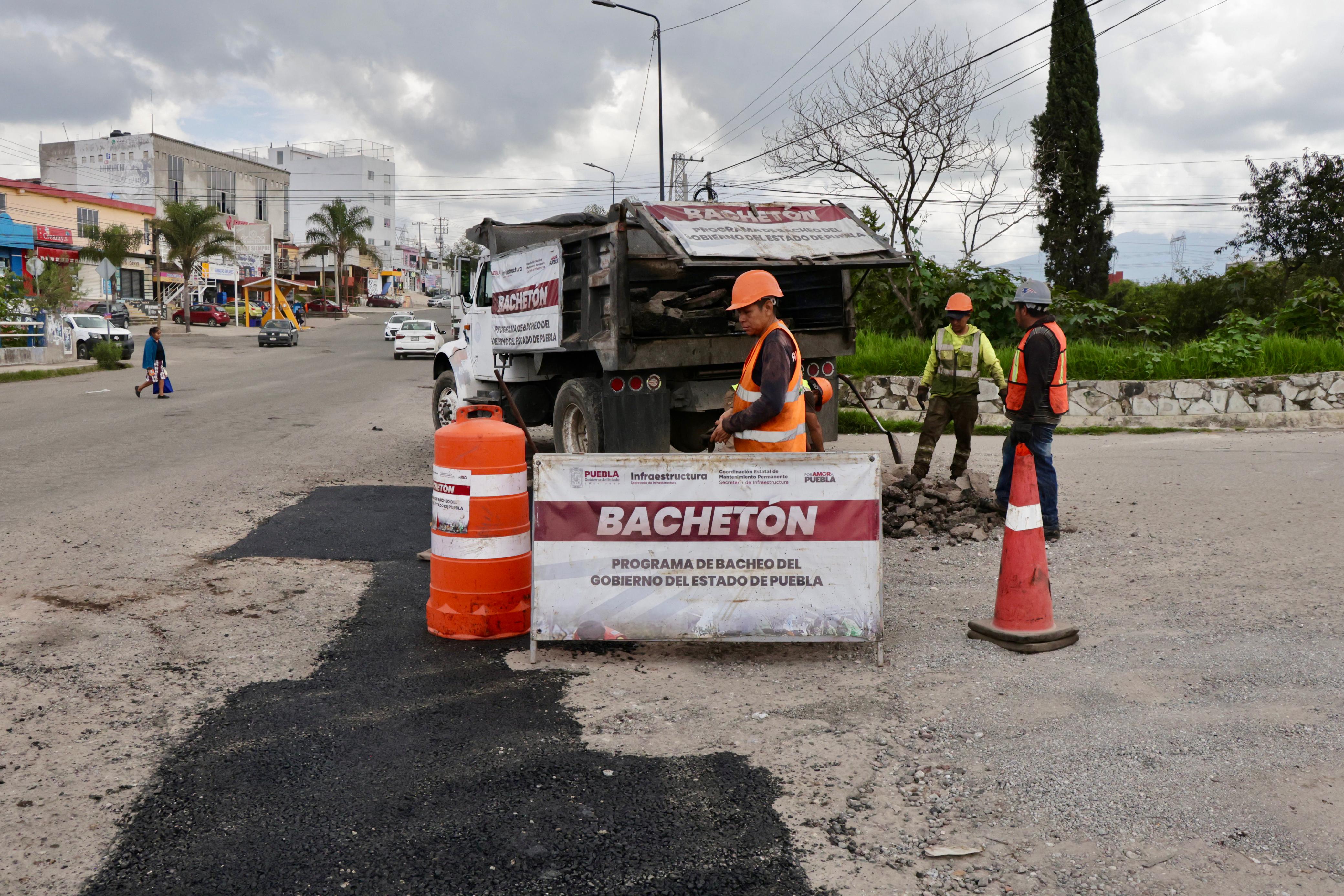 CIUDAD DE PUEBLA, Pue.- El programa estatal “Bachetón, Por Amor a Puebla”, impulsado por el gobierno que encabeza Alejandro Armenta, continúa mejorando las condiciones de las calles del estado como parte de una estrategia integral que apuesta por la seguridad, el orden urbano y el bienestar ciudadano. Con una inversión de 50 millones de pesos, las cuadrillas trabajan sin interrupciones, las 24 horas del día, los siete días de la semana, para atender el rezago en la infraestructura vial.
