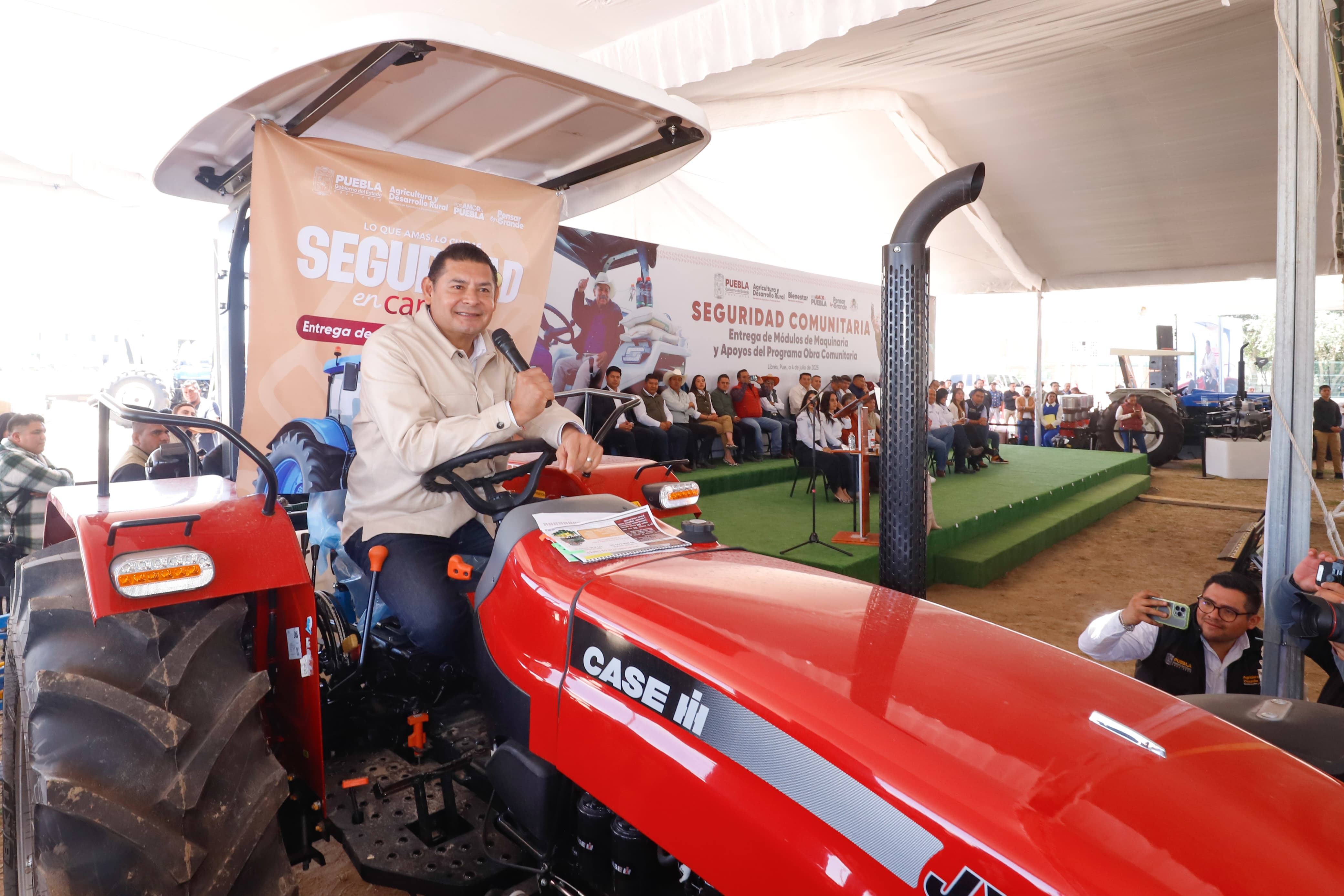 LIBRES, Pue.- Con una inversión histórica de 150 millones de pesos, el gobernador Alejandro Armenta dio el banderazo al programa “Seguridad para el Campo y Seguridad Comunitaria”, mediante la entrega de 27 módulos de maquinaria con drones, tractores y todos los implementos, que beneficiarán a más de 400 mil familias más pobres de Puebla. “Es un sueño hecho realidad”, afirmó el mandatario estatal.