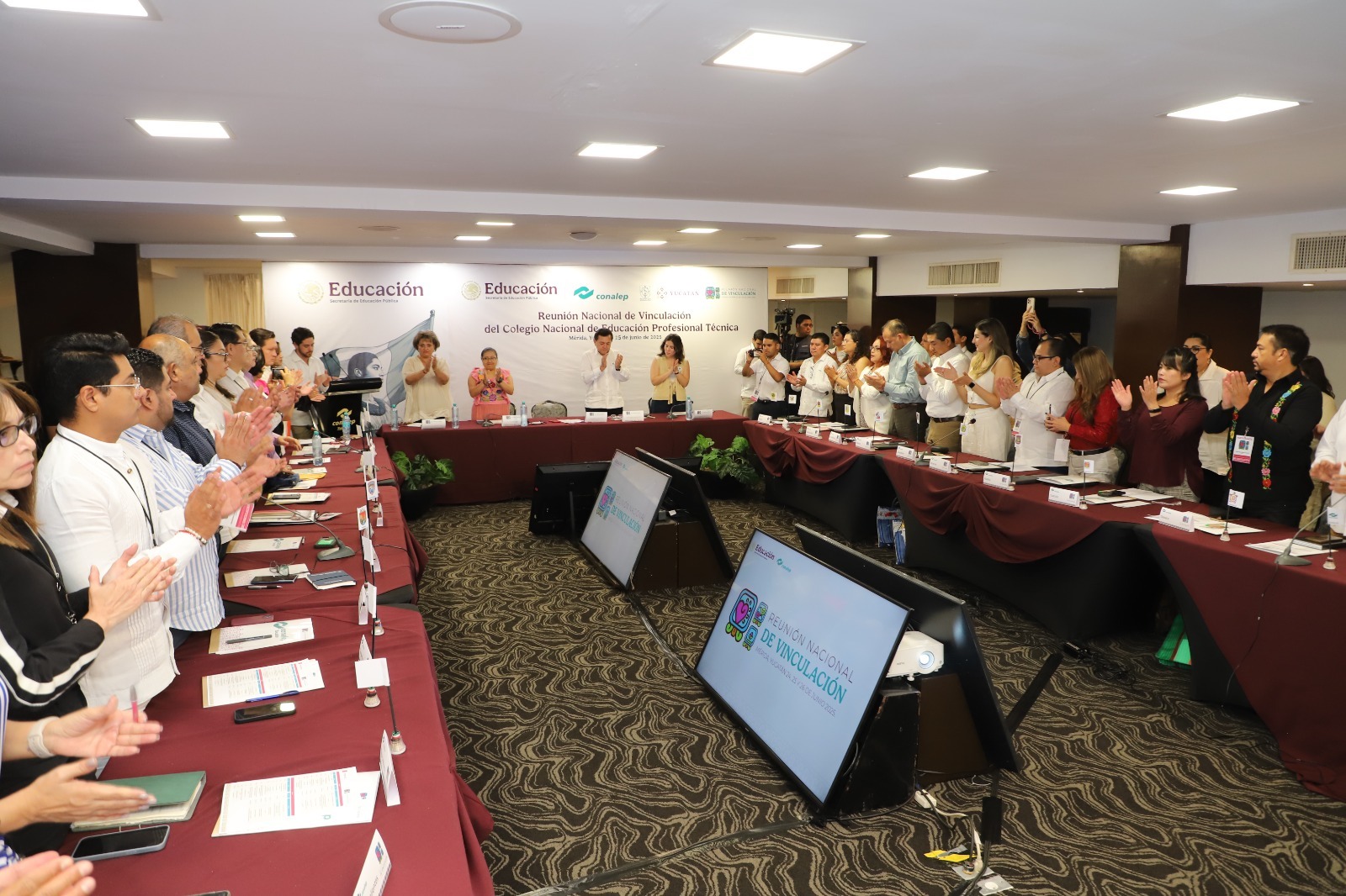 Al encuentro, que fue presidido por el Vinculador Social Nacional del colegio, Damián Orduño José y el director general del Conalep Yucatán, Felipe de Jesús Duarte Ramírez, acudieron líderes educativos, vinculadores, así como autoridades estatales y federales, con el objetivo de intercambiar ideas, propuestas y estrategias innovadoras para fortalecer la relación entre las empresas y el Conalep para privilegiar la formación integral de la comunidad educativa.