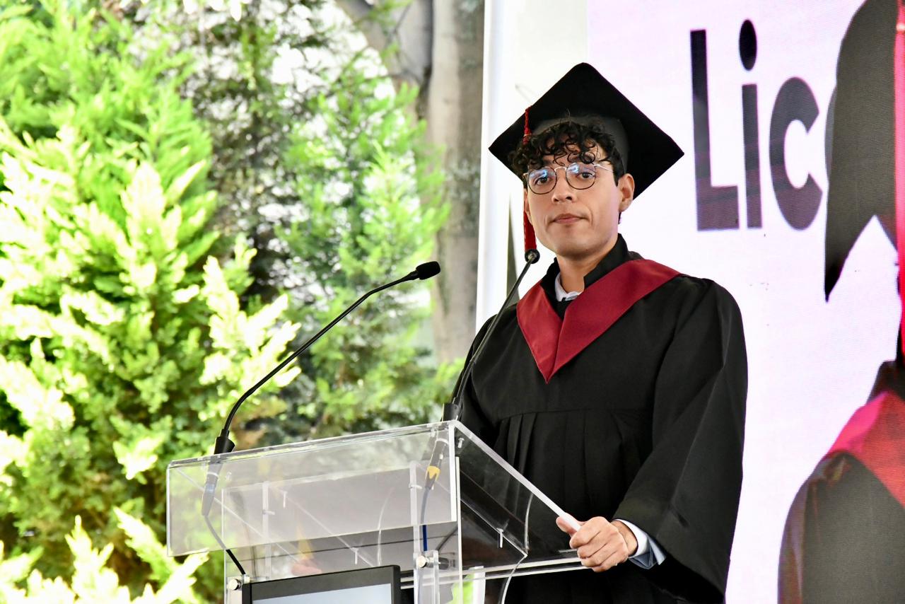 Dicha ceremonia estuvo encabezada por el subdirector de Universidades en la entidad, Irving Alejandro Córdova Guerrero, quien, en representación del mandatario estatal destacó que graduarse lleva una gran responsabilidad y el conocimiento es la mayor virtud esencial para el desarrollo humano.