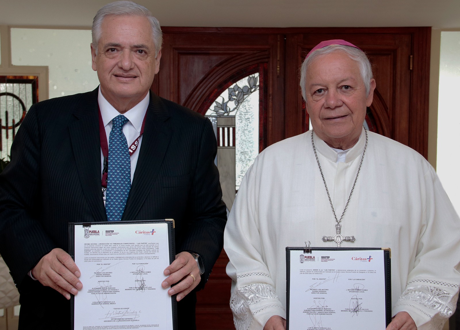 "Acabamos de firmar un convenio de colaboración con Cáritas, institución de servicio social y de caridad de la Iglesia Católica. Para nosotros en el ISSSTEP es fundamental seguir la instrucción del gobernador Alejandro Armenta, de avanzar en el humanismo mexicano mediante la bioética social, que es precisamente estar cerca de la gente que más necesita los servicios del Gobierno del Estado", dijo en su mensaje Godina Herrera.