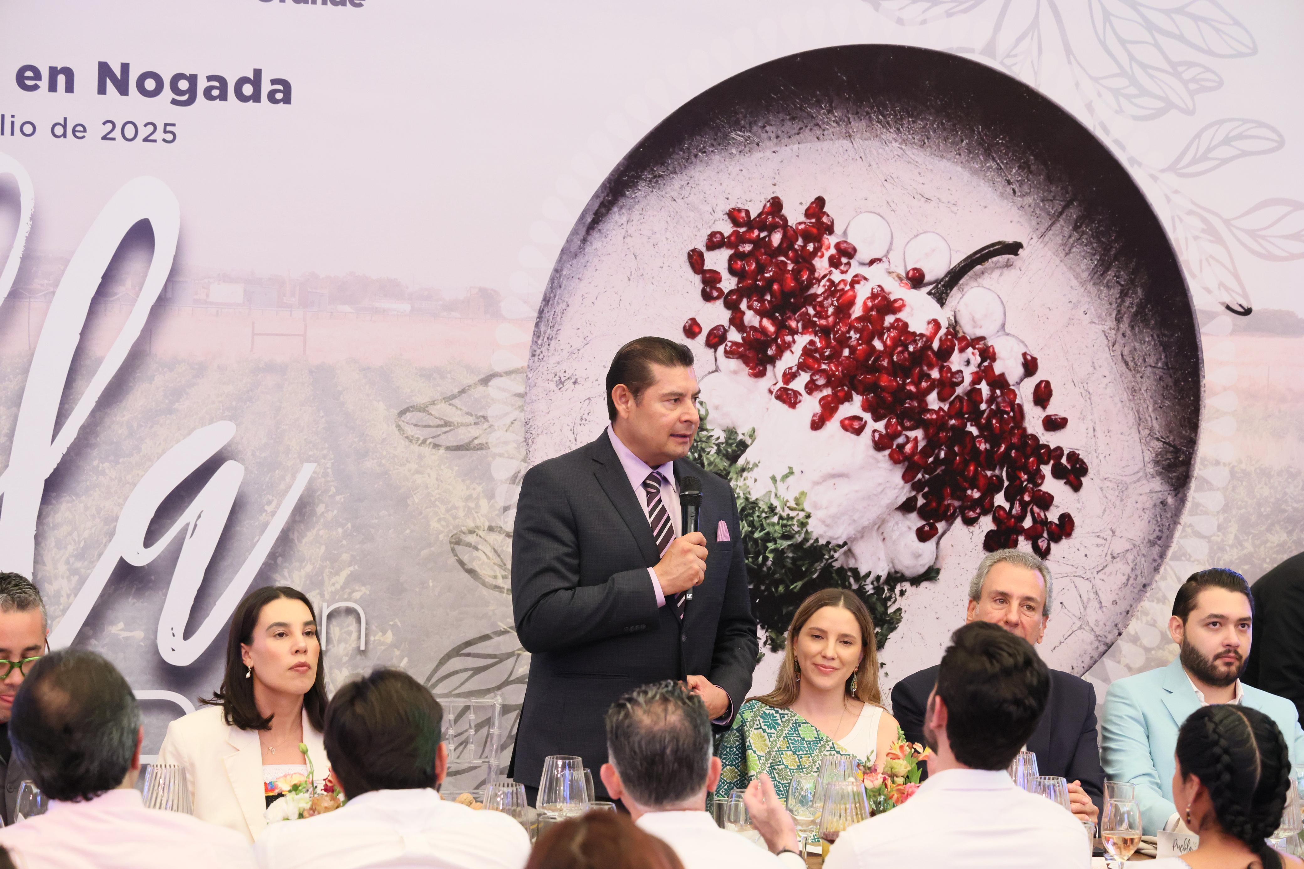 Ante autoridades estatales, federales y empresarios, el gobernador Alejandro Armenta reconoció el impulso que la secretaria de Turismo Federal, Josefina Rodríguez, ha dado a la promoción de Puebla y al emblemático platillo barroco, mismo que combina los sabores y características de la tierra poblana. "Porque hacer un platillo como el Chile en Nogada implica arte. Por eso queremos que las y los visitantes disfruten a Puebla en el paladar y se lo lleven en el corazón.