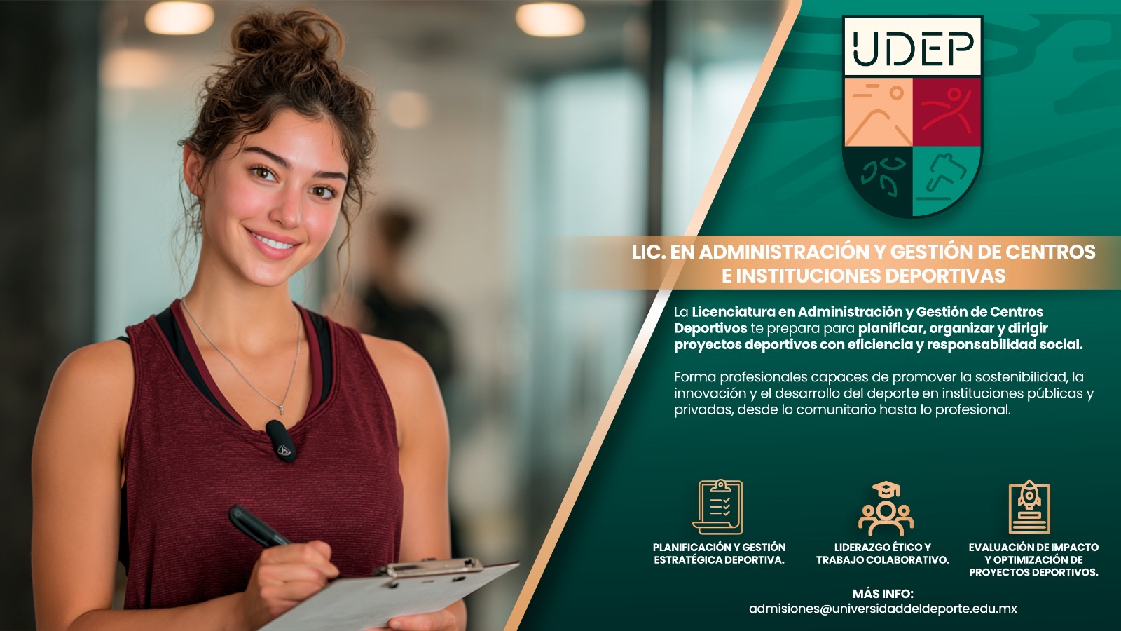 A partir del día martes 22 de julio será la solicitud de Ficha de Admisión en la Universidad del Deporte, ubicada en Bulevar Atlixco, 2103 Col. Belisario Domínguez C.P. 72180 Heroica Puebla de Zaragozaun horario de 09:00 a 16:00 hrs.