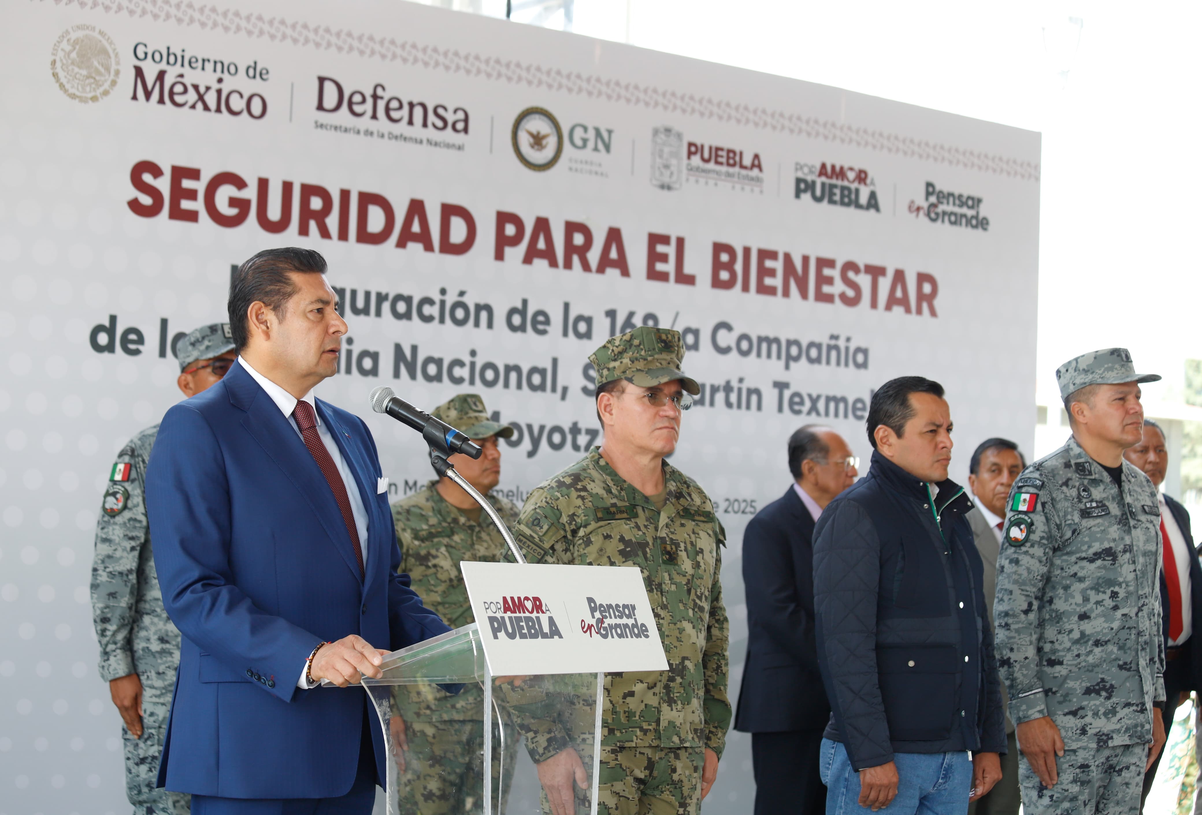 SAN MARTÍN TEXMELUCAN, Pue.- El gobernador de Puebla, Alejandro Armenta, en compañía del general de Brigada de Estado Mayor, Vicente Javier Mandujano Acevedo, Coordinador Estatal de la Guardia Nacional, encabezó la inauguración de la 168/a Compañía de la Guardia Nacional, que tendrá el objetivo de fortalecer la prevención y salvaguardar la integridad de los ciudadanos.