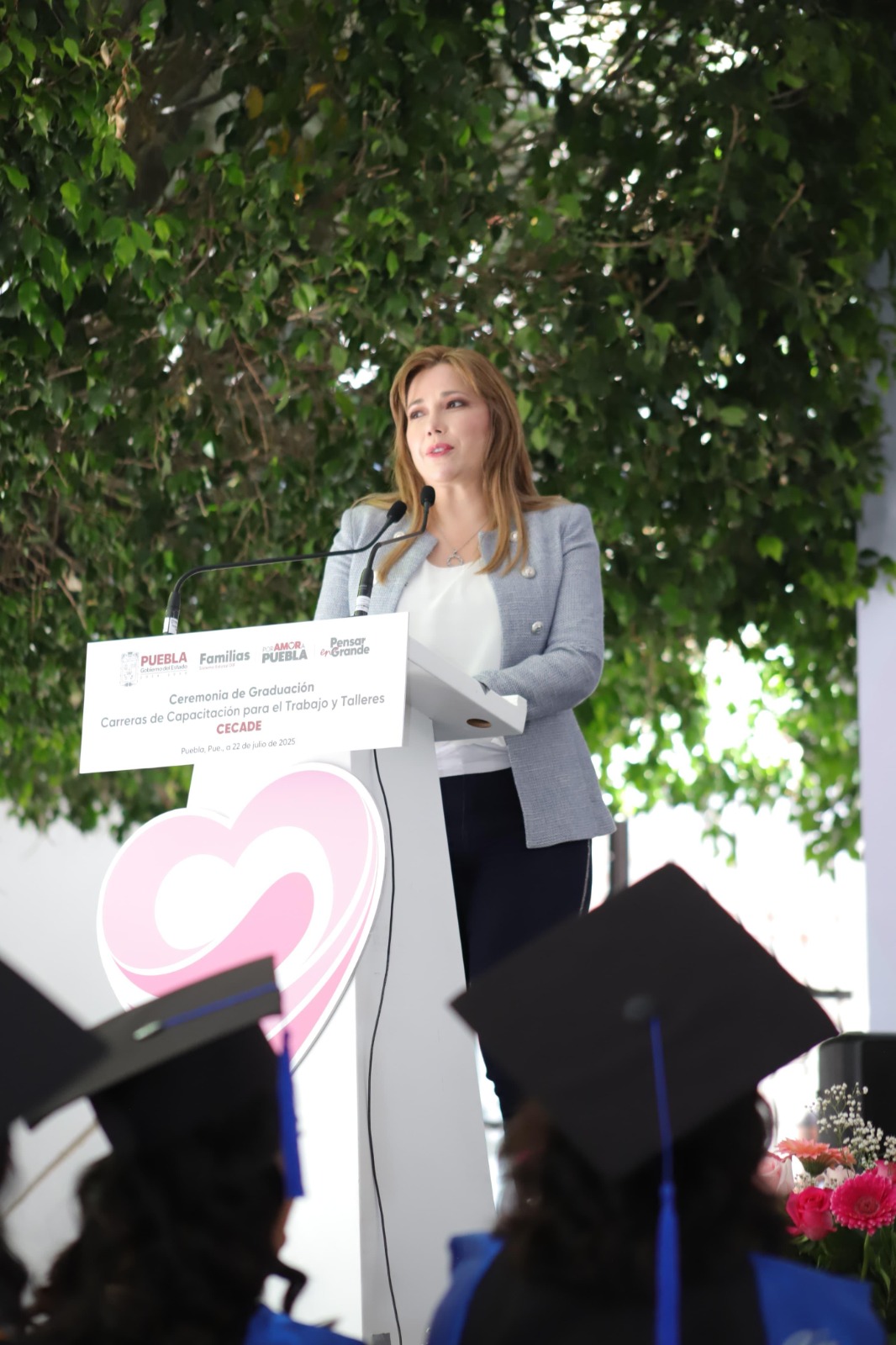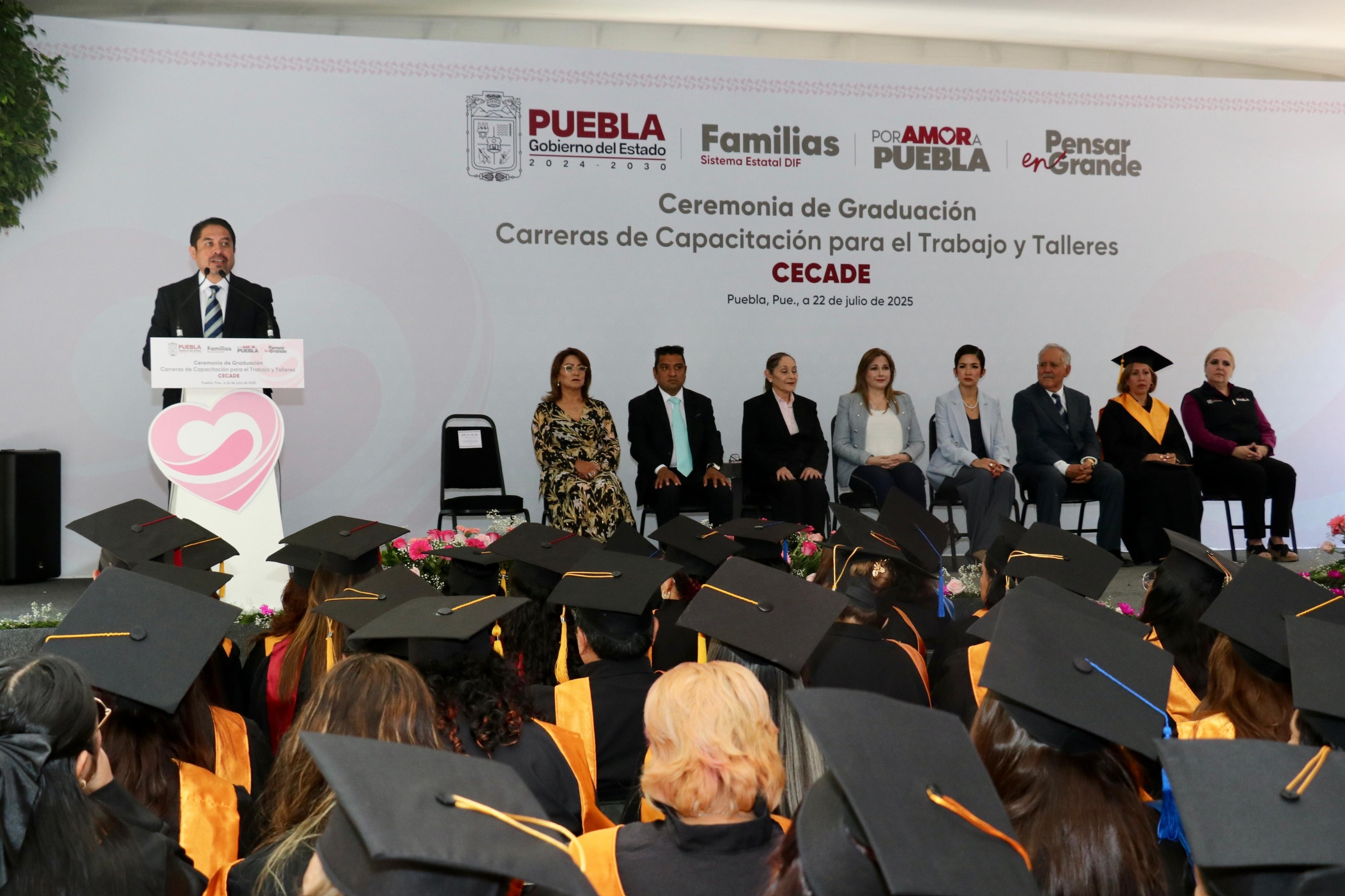 CIUDAD DE PUEBLA, Pue.– Con un emotivo mensaje dirigido a las y los graduados de los Centros de Capacitación y Desarrollo (CECADE), la presidenta del Patronato del Sistema Estatal DIF, Ceci Arellano, reafirmó que el organismo mantiene sus puertas abiertas para todas las familias poblanas. “Como mujeres, nos sentimos comprometidas con nuestras comunidades; sabemos lo que enfrentamos cada día, porque somos el pilar de la familia”, expresó.