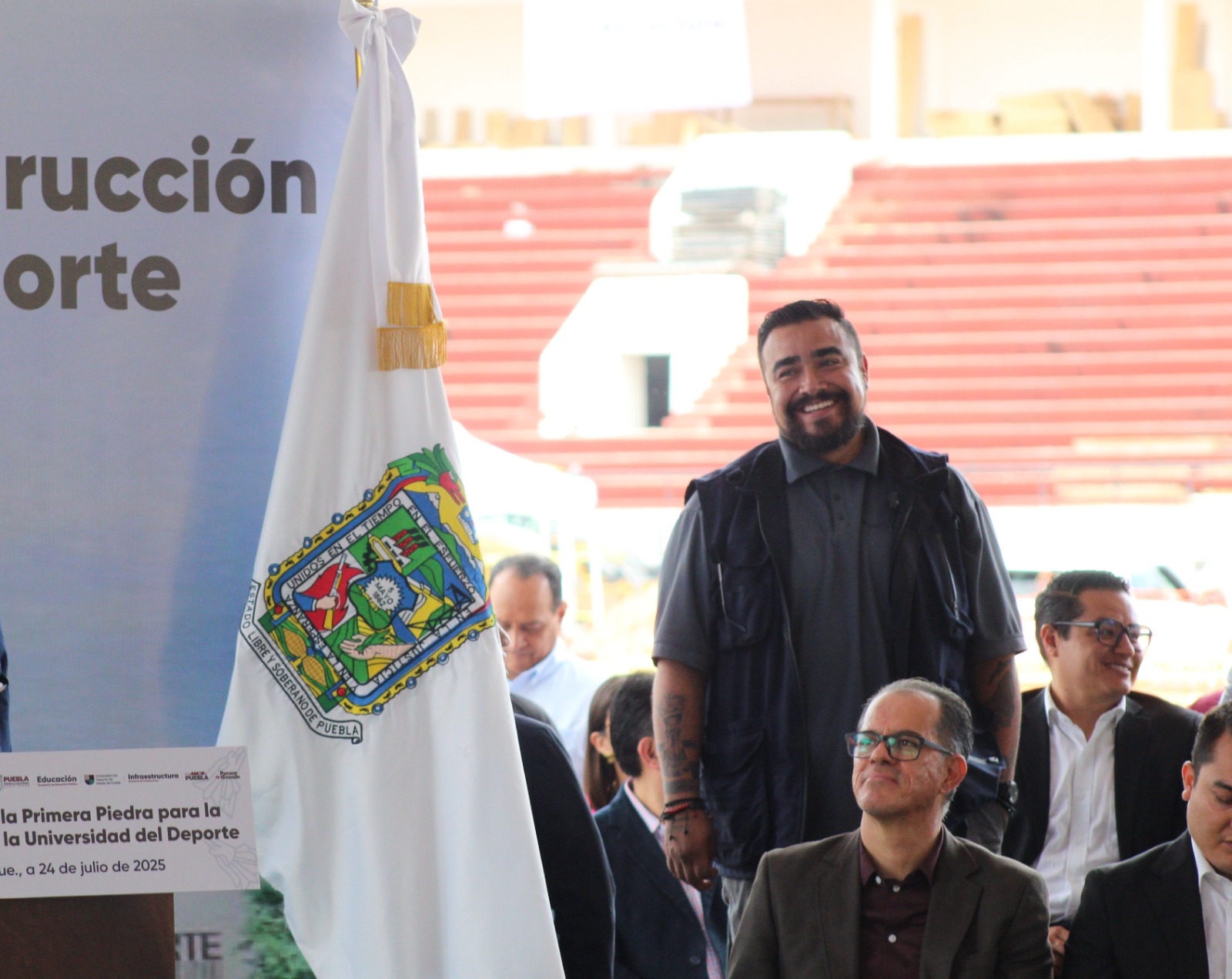 CIUDAD DE PUEBLA.- En el marco de la colocación de la primera piedra de la Universidad del Deporte del Estado de Puebla (UDEP), el rector José Luis Sánchez Solá reconoció a las y los directores de la UDEP que destacan por ser atletas de alto rendimiento y por comprometerse con la juventud que busca cumplir sus sueños. “Estoy muy agradecido por contar con el apoyo de grandes atletas, así como de todo el personal administrativo, quienes han hecho posible arrancar con este sueño que busca generar bienestar con seguridad. Igualmente valoro a las y los titulares de las secretarías de Infraestructura, Deporte y Educación pues son el pilar del proyecto que se edifica en el Estadio Olímpico Ignacio Zaragoza”.