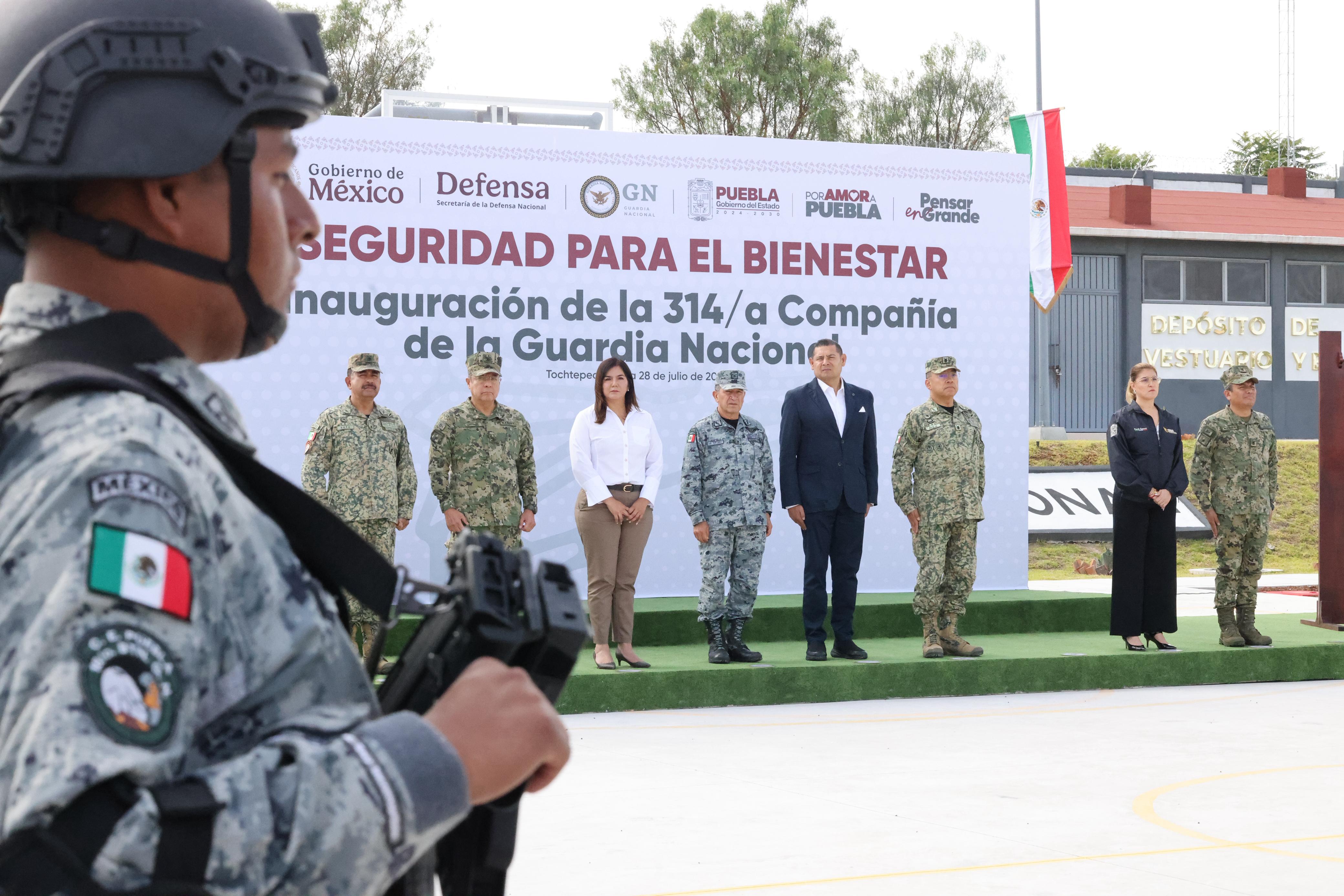 TOCHTEPEC, Pue.– En un acto de unidad y compromiso por la seguridad del país, el gobernador constitucional del Estado de Puebla, Alejandro Armenta, estuvo presente en la inauguración de la 314ª Compañía de la Guardia Nacional, junto a autoridades federales, estatales y municipales. Esta nueva instalación representa un avance estratégico dentro del Plan Nacional de Paz y Seguridad, instruido por la presidenta de México, Claudia Sheinbaum, quien funge como Comandanta Suprema de las Fuerzas Armadas.