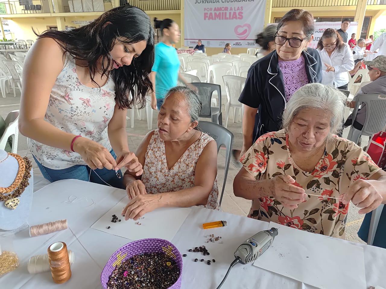 JALPAN, Puebla.– Durante la Jornada Ciudadana Por Amor a las Familias, la Secretaría de Agricultura y Desarrollo Rural, a través del área de voluntariado, participó con los Talleres con Amor, iniciativa enfocada en impulsar el valor agregado de los productos locales mediante la capacitación agroindustrial y artesanal.
