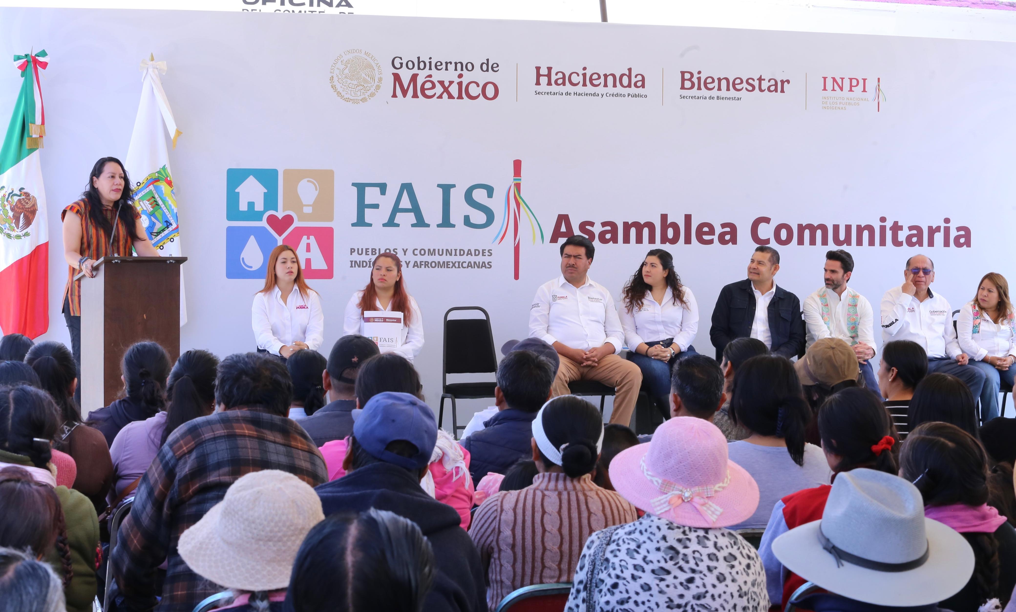 CIUDAD DE PUEBLA, Pue.- Al entregar tarjetas del Fondo de Aportaciones para la Infraestructura Social de los Pueblos y Comunidades Indígenas y Afromexicanas (FAISPIAM), en la junta Auxiliar de San Miguel Canoa, población indígena ubicada en la capital de Puebla, la directora General de Alimentación para el Bienestar del Gobierno de México, María Luisa Albores, destacó que este acto es un hecho histórico que reconoce sus derechos con recursos de beneficio social.