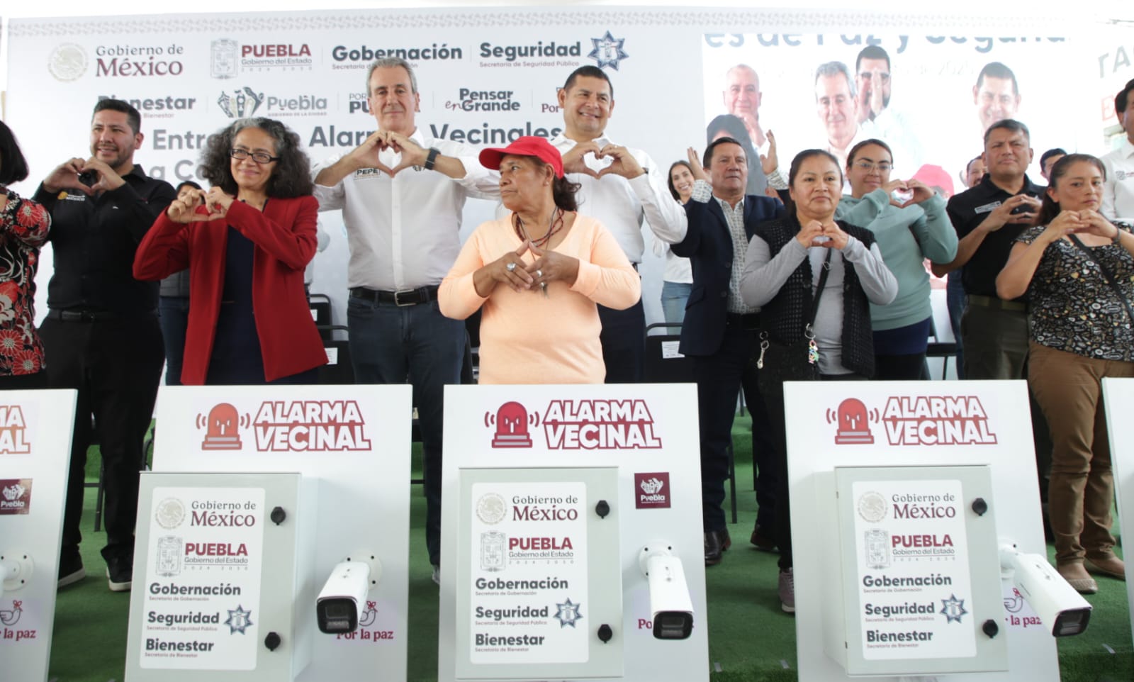 -El gobernador de Puebla, Alejandro Armenta, encabezó la entrega de 100 alarmas vecinales en la junta auxiliar San Felipe Hueyotlipan.