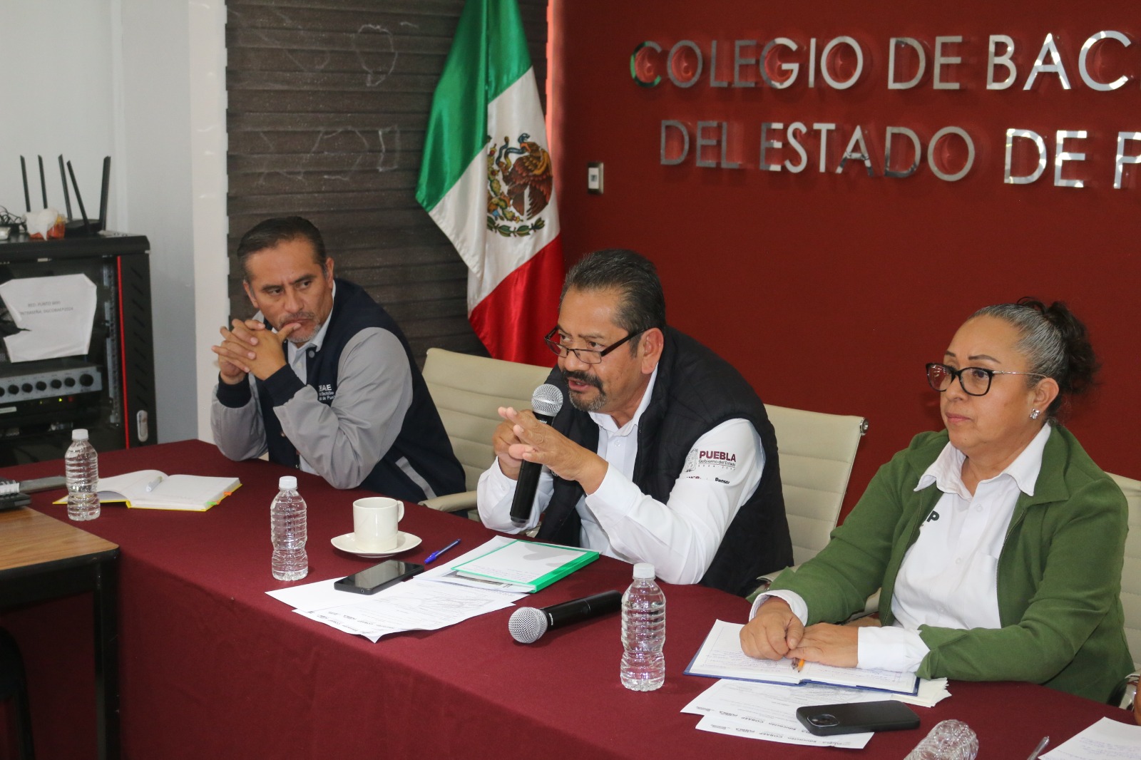 En las oficinas centrales del COBAEP, estuvieron reunidos las y los directores y encargados de los 37 planteles; en el encuentro, analizaron los temas que desarrollarán durante el siguiente periodo de actividades educativas que darán bienestar y seguridad a las y los estudiantes como: las acciones y estrategias para disminuir la deserción y el abandono escolar; fortalecer el seguimiento a egresados, y dar continuidad al calendario de actividades académicas.