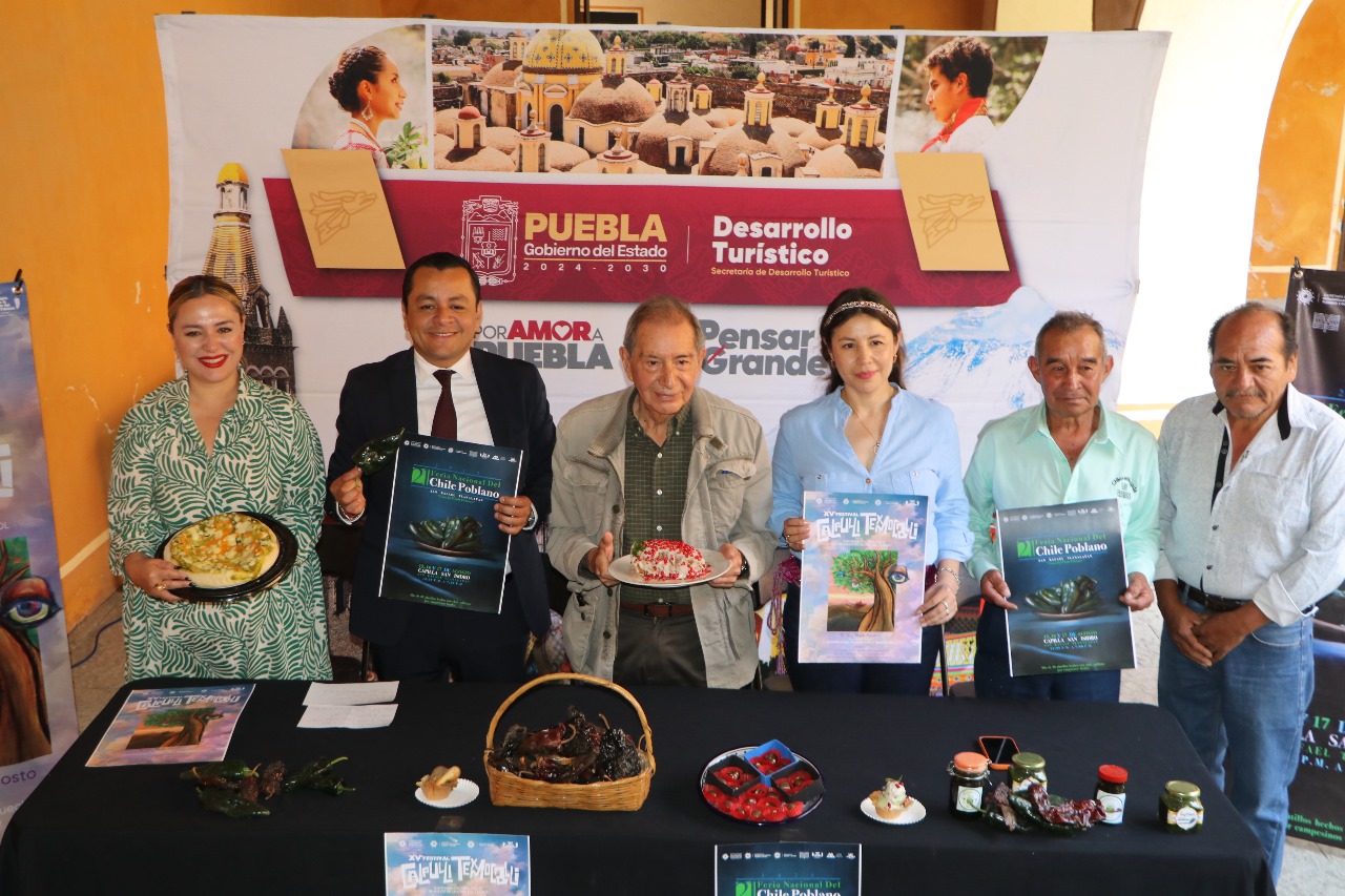 CIUDAD DE PUEBLA, Pue.- Por Amor a Puebla, el Gobierno del Estado, a través de la Secretaría de Desarrollo Turístico, y el municipio de San Martín Texmelucan presentó el XV Festival Multicultural Calpulli Texmocalli y la 21º edición de la Feria Nacional del Chile Poblano, evento que reunirá a productores, cocineras tradicionales, artesanos y agricultores para promover la gastronomía, la identidad cultural y el crecimiento económico de la región. Se estima una derrama económica de entre 5 y 6 millones de pesos.