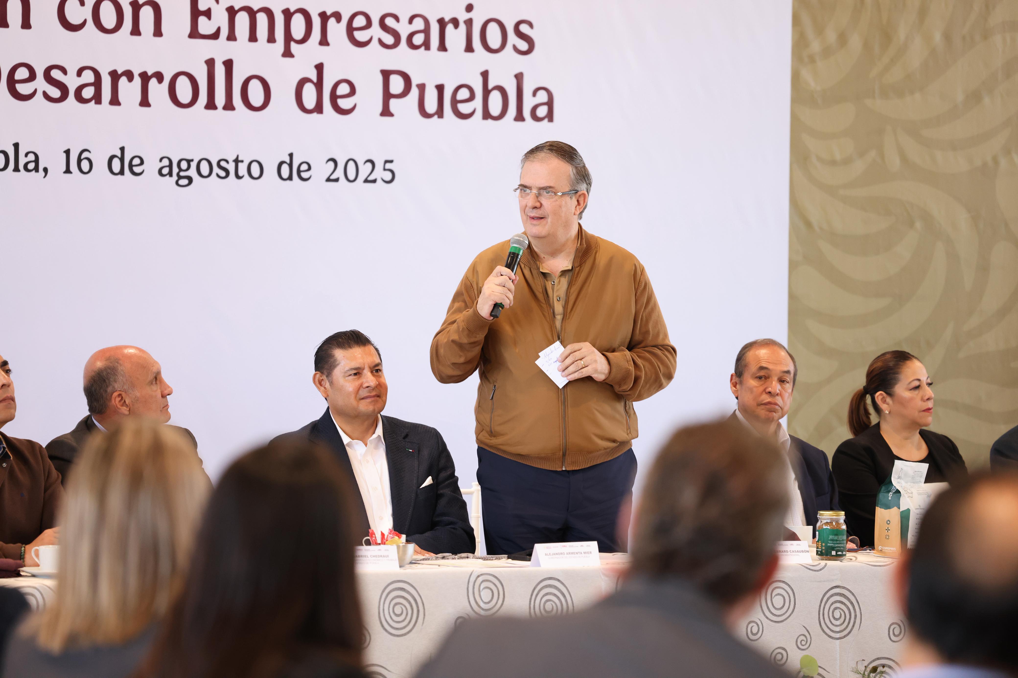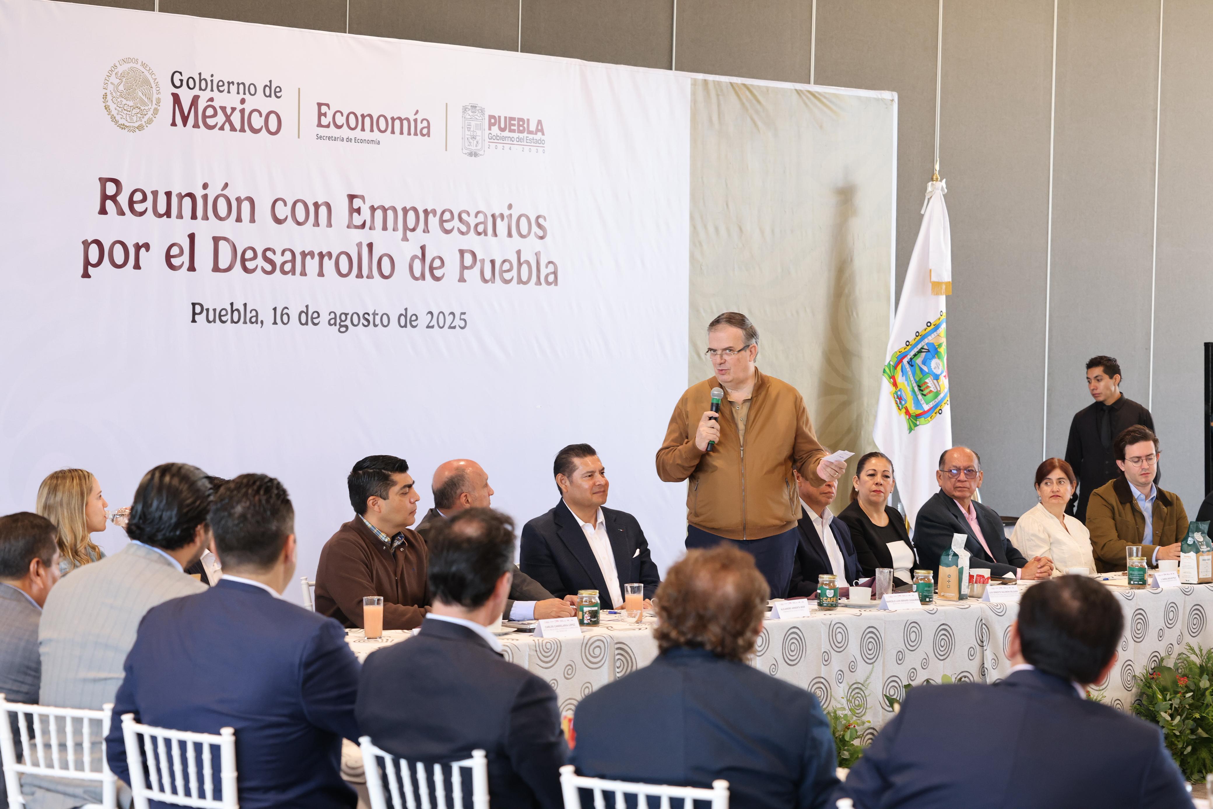 SAN JOSÉ CHIAPA, Pue.– El secretario de Economía del Gobierno Federal, Marcelo Ebrard, presentó ante empresarias y empresarios poblanos el modelo de Polos de Desarrollo Económico para el Bienestar, impulsado por la presidenta Claudia Sheinbaum a través del Plan México. Señaló que este esquema permitirá acelerar el crecimiento del país con innovación y con la participación de empresas mexicanas.