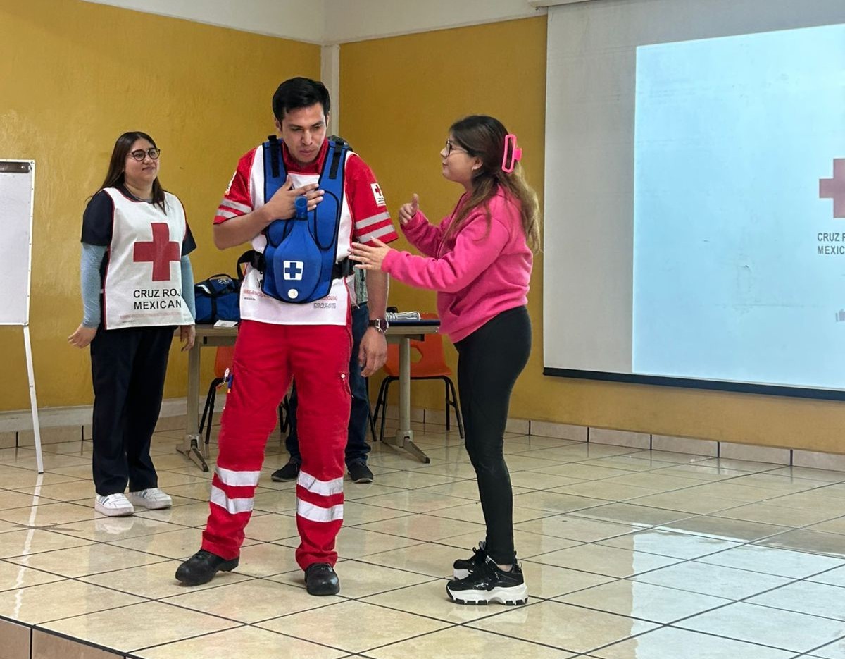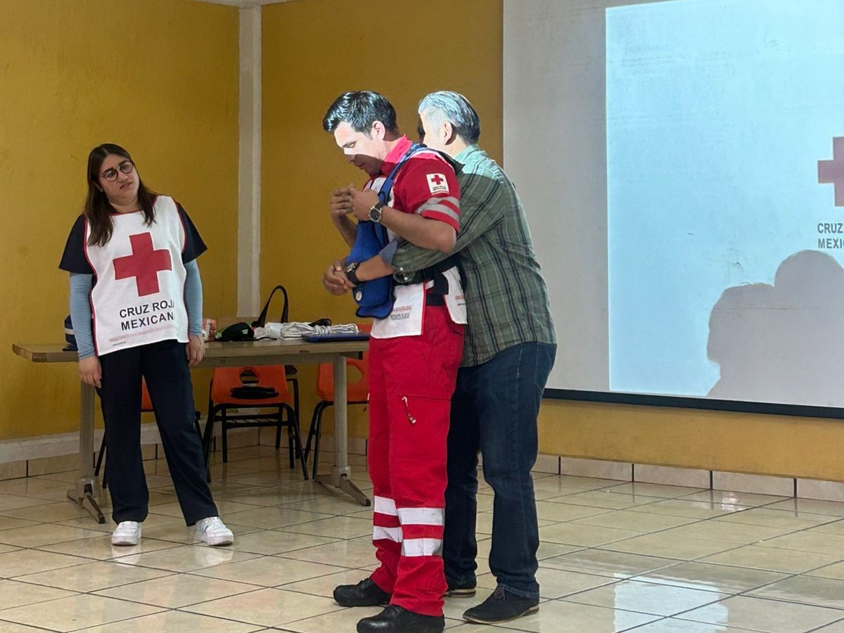 Durante la dinámica que estuvo a cargo de un médico, un paramédico y un primer respondiente de la Delegación Teziutlán de Cruz Roja, las y los maestros, así como administrativos del centro educativo, aprendieron técnicas de Reanimación Cardiopulmonar (RCP), cómo actuar ante hemorragias y traumatismos, la importancia de la seguridad del interviniente, el manejo de obstrucciones de la vía aérea, y la atención a lesiones por calor o frío a fin de estabilizar al paciente hasta que pueda otorgarle atención un profesional médico.