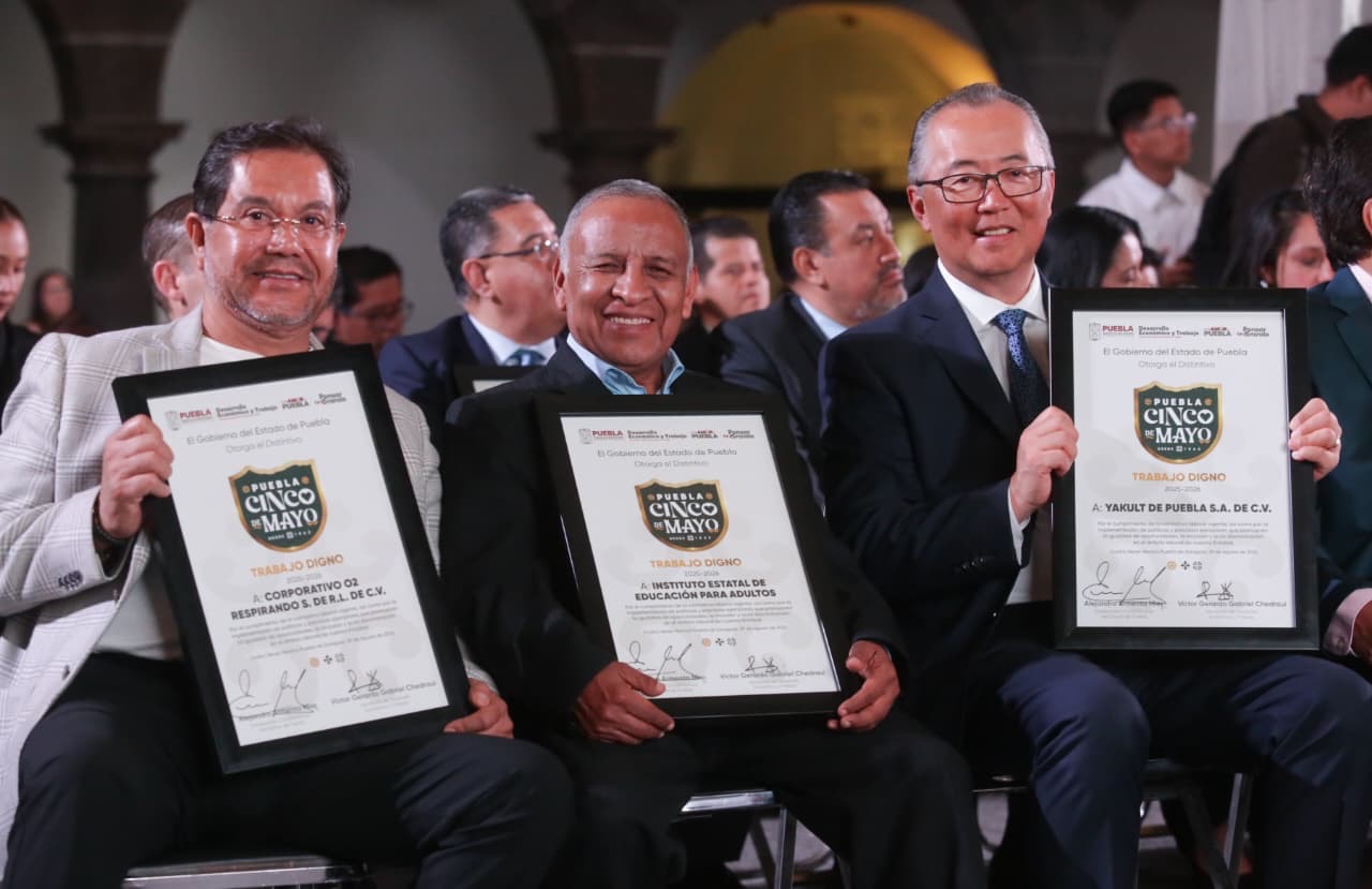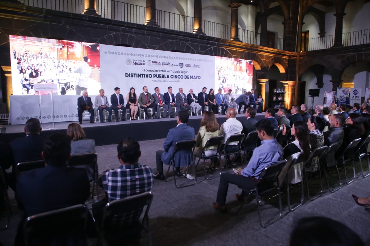 -La administración estatal, a través de la Secretaría de Desarrollo Económico y Trabajo, entregó el Distintivo Puebla Cinco de Mayo a 50 empresas comprometidas con el trabajo digno