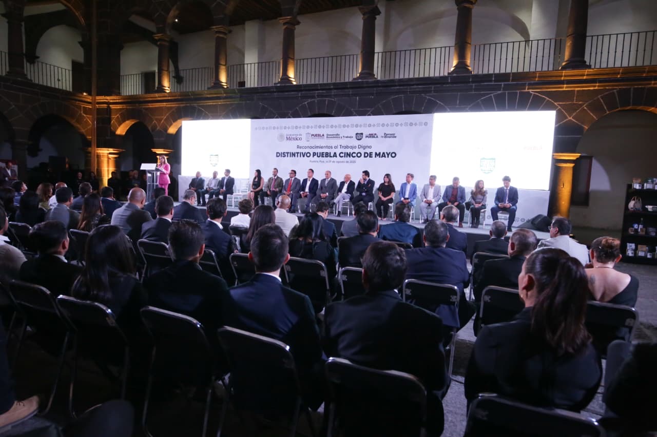 CIUDAD DE PUEBLA, Pue.- Con el propósito de reconocer a las empresas comprometidas con el trabajo digno, los derechos laborales, la igualdad de género y la discriminación, el Gobierno de Puebla a través de la Secretaría de Desarrollo Económico y Trabajo, entregó el Distintivo Puebla Cinco de Mayo a 50 empresas que benefician a más de 15 mil trabajadoras y trabajadores.