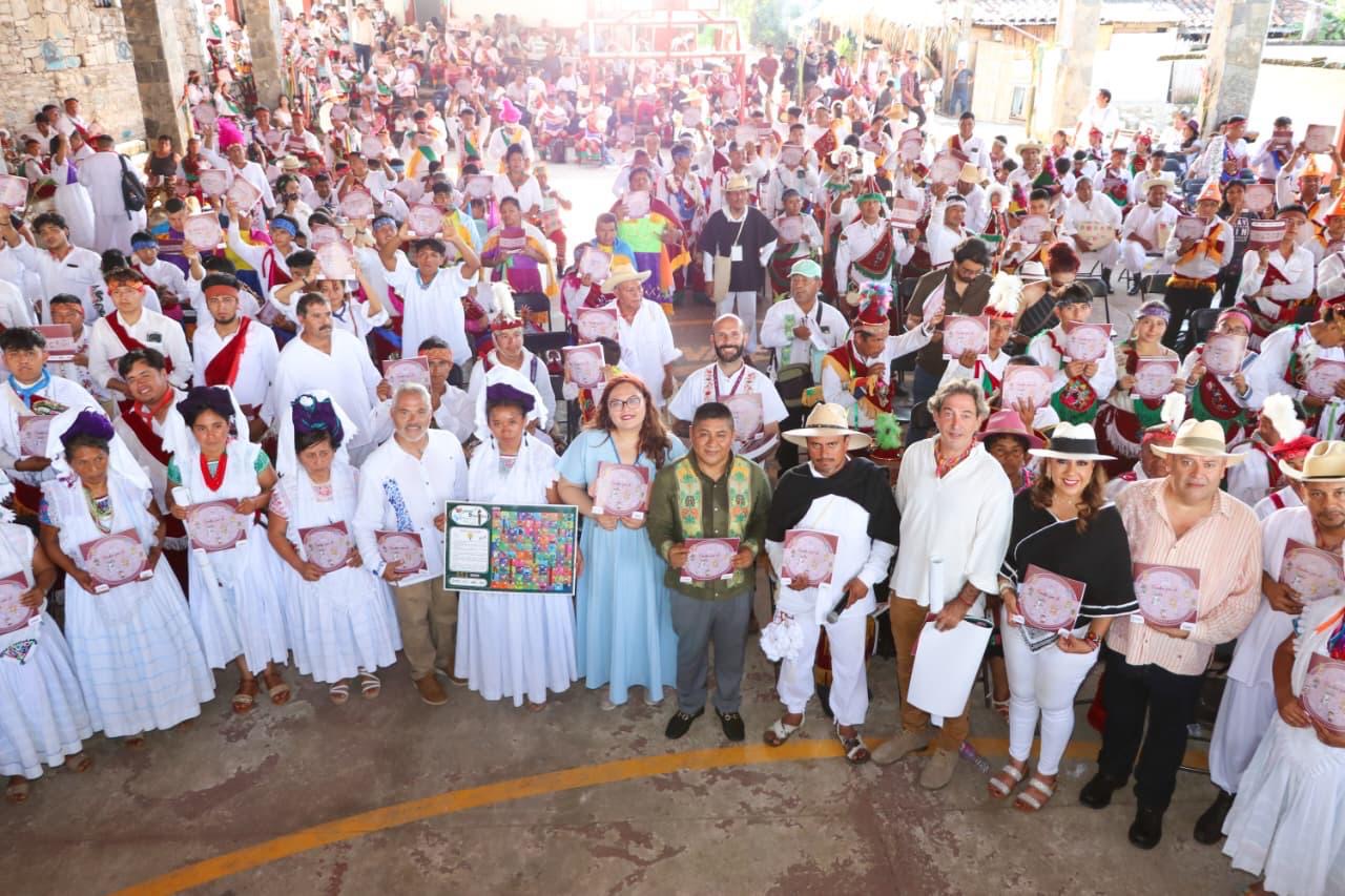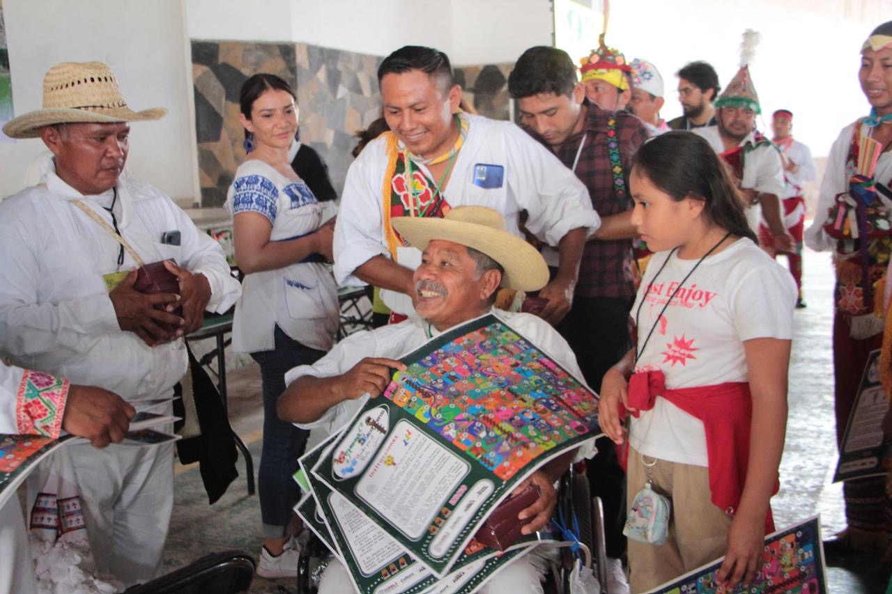 Además, la dependencia realizó la presentación y distribución de material lúdico sobre la danza, consistente en un cuadernillo titulado “Unidos por el vuelo”, un memorama, la versión de un juego de serpientes y escaleras, y un mapa de geolocalización de los centros ceremoniales de la Danza de Voladores. Estos materiales fueron diseñados para fortalecer los procesos de enseñanza comunitaria, sensibilizar a la población sobre el valor de esta práctica cultural y garantizar su continuidad en el tiempo.