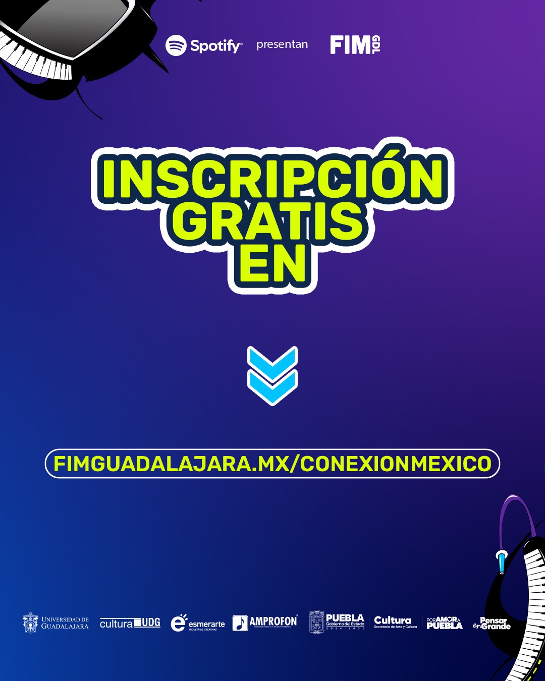 El registro previo de las y los participantes puede realizarse sin costo en el sitio oficial: fimguadalajara.mx/conexionmexico. Con este proyecto, fomentado por la Secretaría de Arte y Cultura, el gobernador Alejandro Armenta da certeza a la comunidad e identidad musical poblana, y garantiza el acceso a eventos de talla internacional que propulsen el ámbito artístico Por Amor a Puebla.