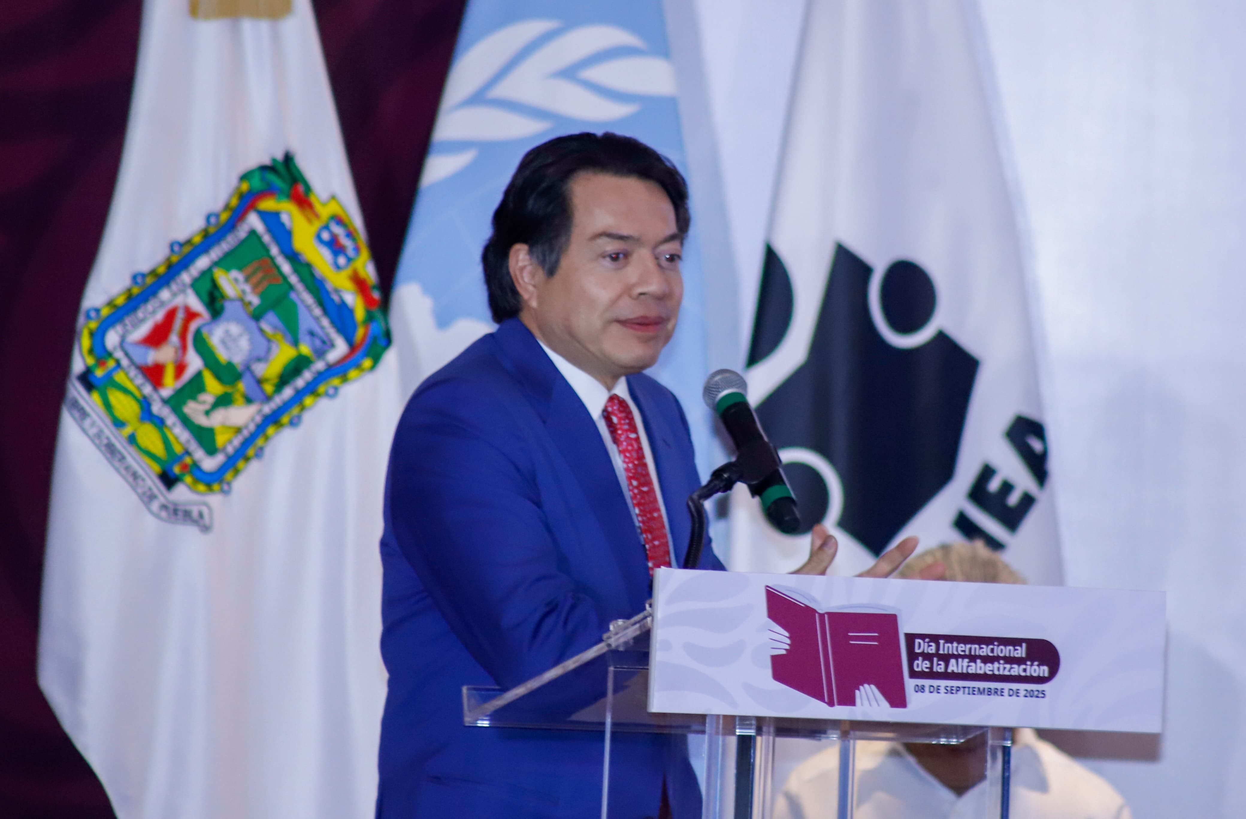CIUDAD DE PUEBLA, Pue.- Al celebrar en Puebla el Foro "Presente y futuro de la Alfabetización en México y el mundo”, el secretario de Educación del Gobierno Federal, Mario Delgado Carrillo, indicó que con el Gobierno de Puebla, Chiapas y otros estados, lograrán la bandera blanca del alfabetismo, ya que comprenden la importancia de la educación e hicieron suya la política educativa de la presidenta, Claudia Sheinbaum.