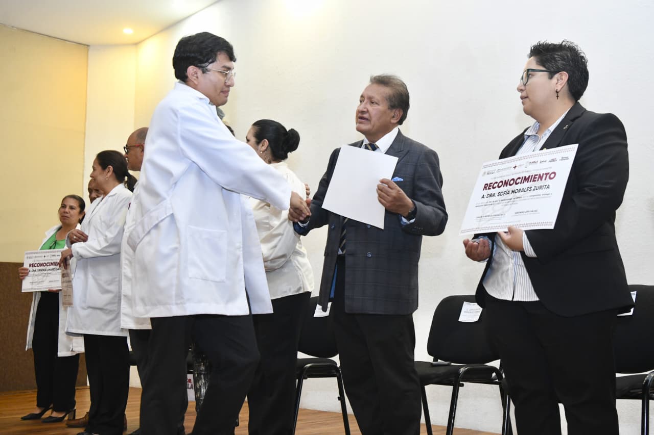 En representación del secretario de Salud, Carlos Alberto Olivier Pacheco, los subsecretarios María del Rocío Rodríguez Juárez y Jorge David González García; destacaron el papel fundamental del personal para proteger y salvaguardar la salud de la población.