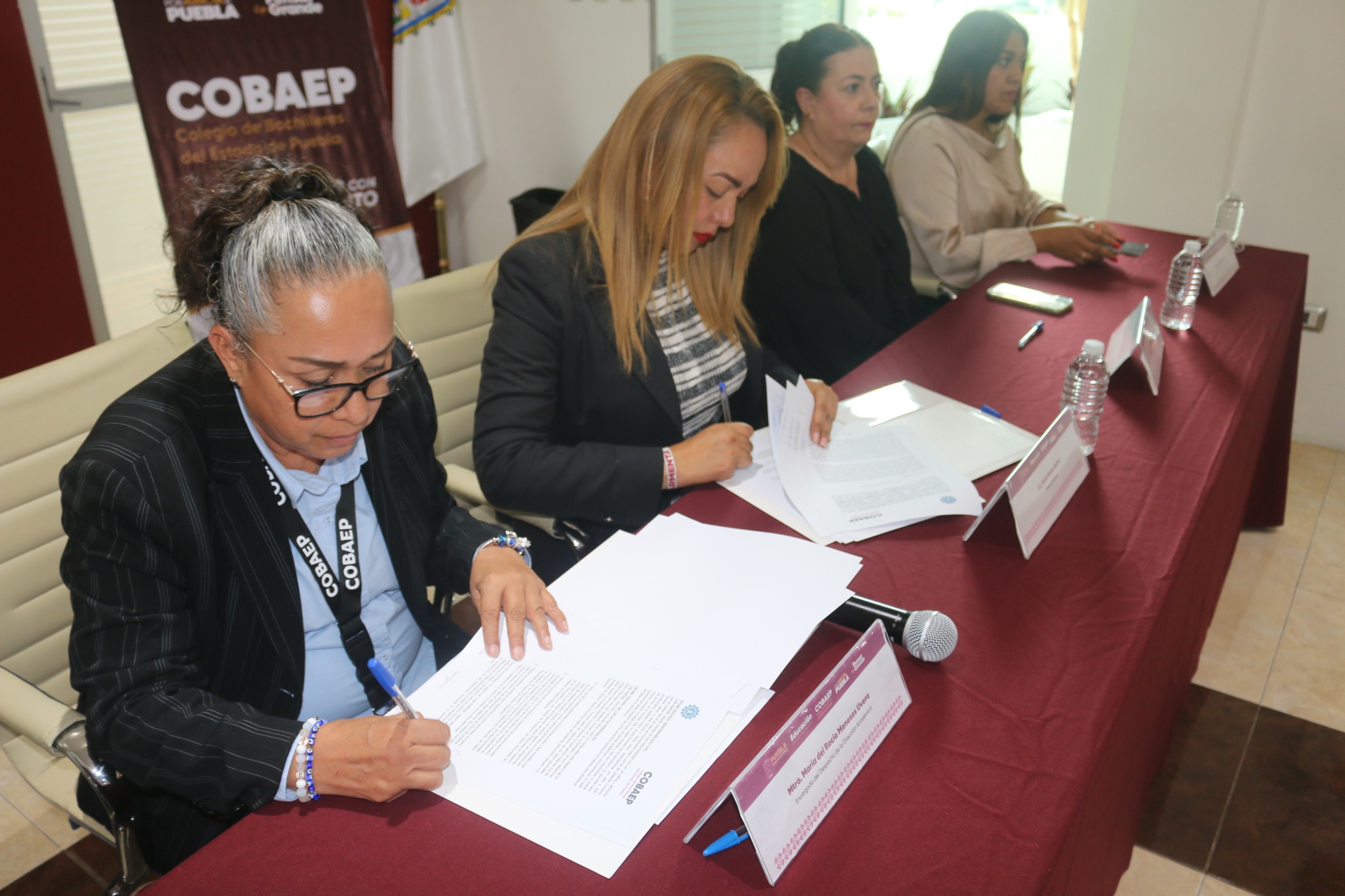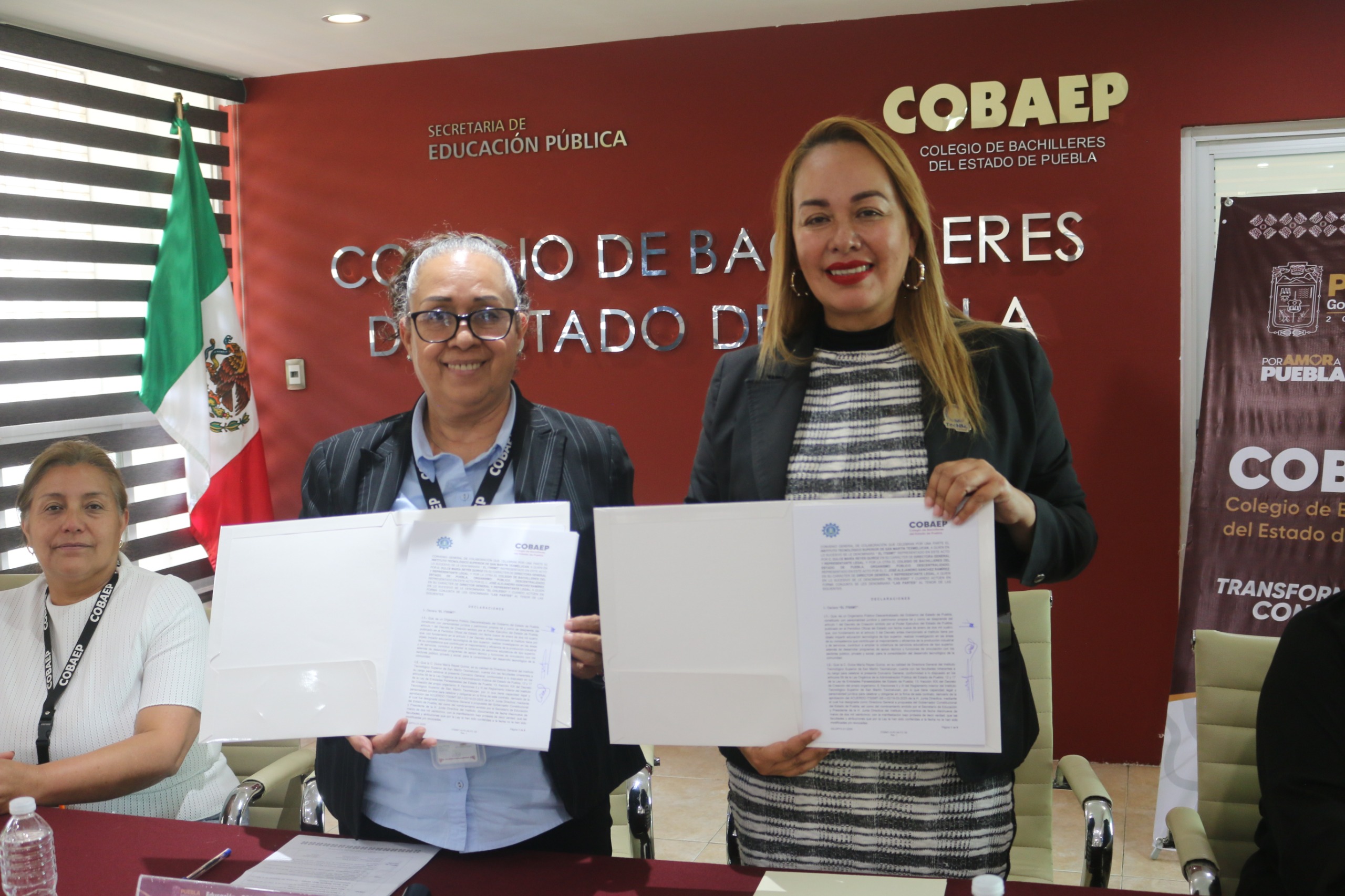 CIUDAD DE PUEBLA, Pue.- Con el objetivo de fortalecer los lazos interinstitucionales y promover el desarrollo académico, vinculación científica y de capacitación tecnológica para las y los estudiantes, así como docentes, el Colegio de Bachilleres del Estado de Puebla (COBAEP) y el Instituto Tecnológico Superior de San Martín Texmelucan (ITSSM), firmaron un convenio de colaboración.