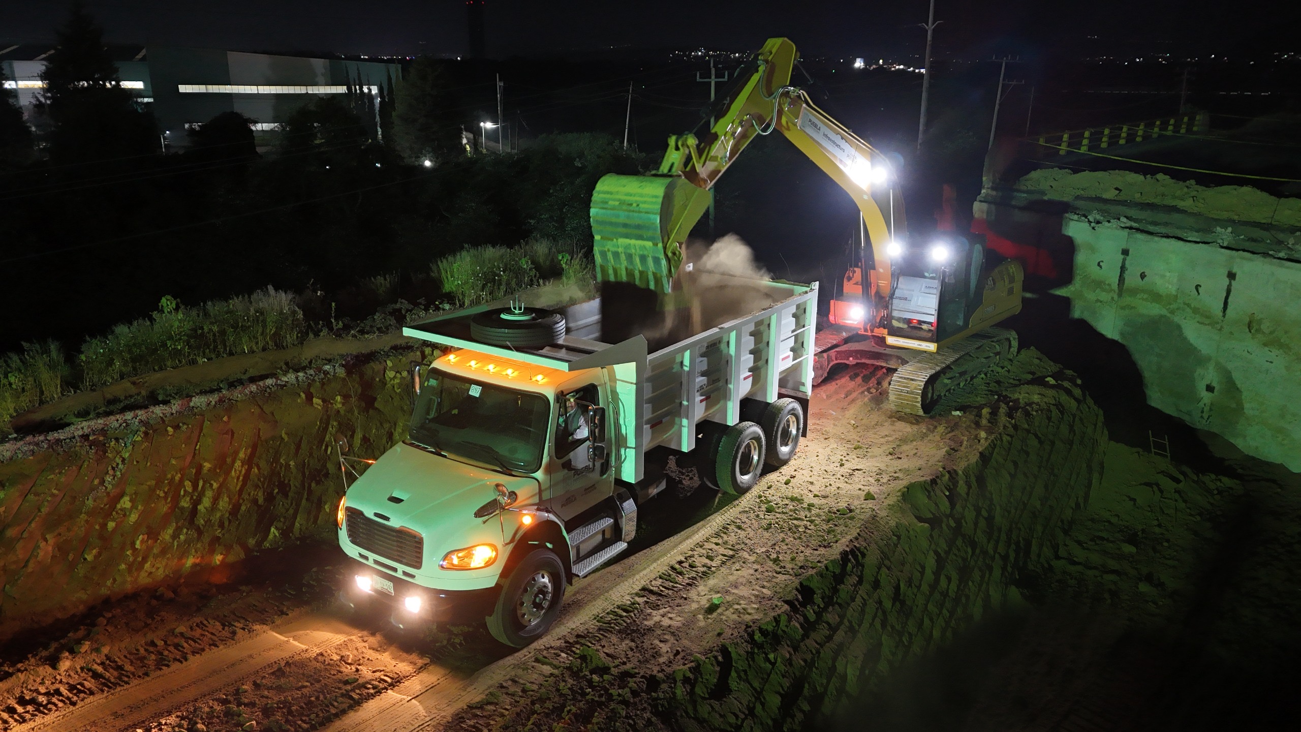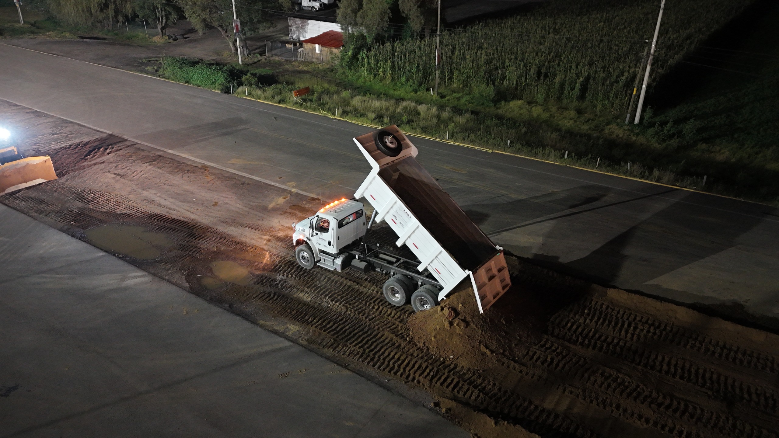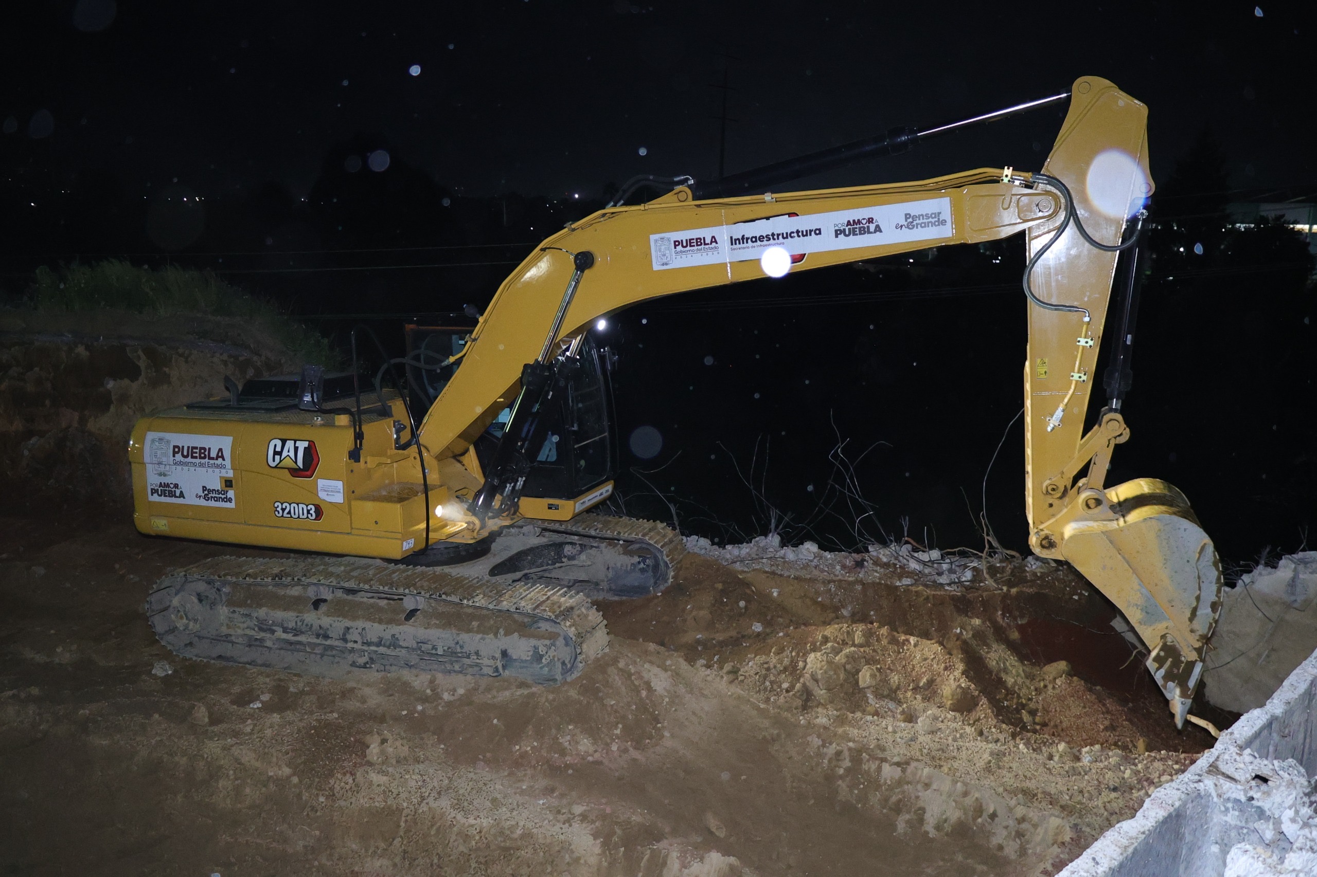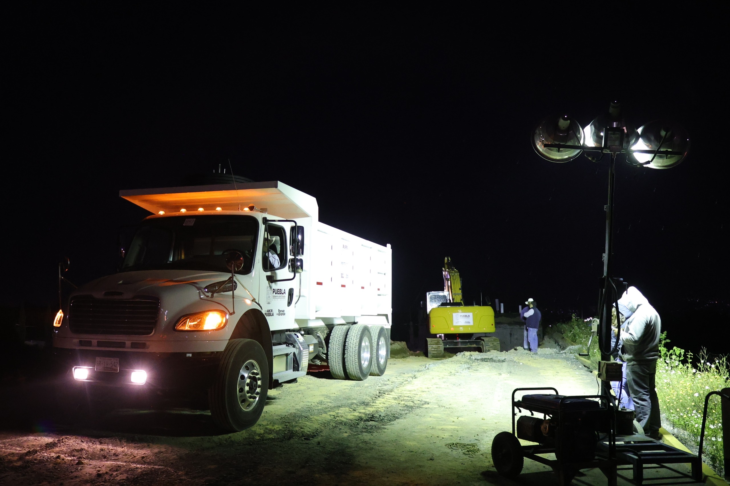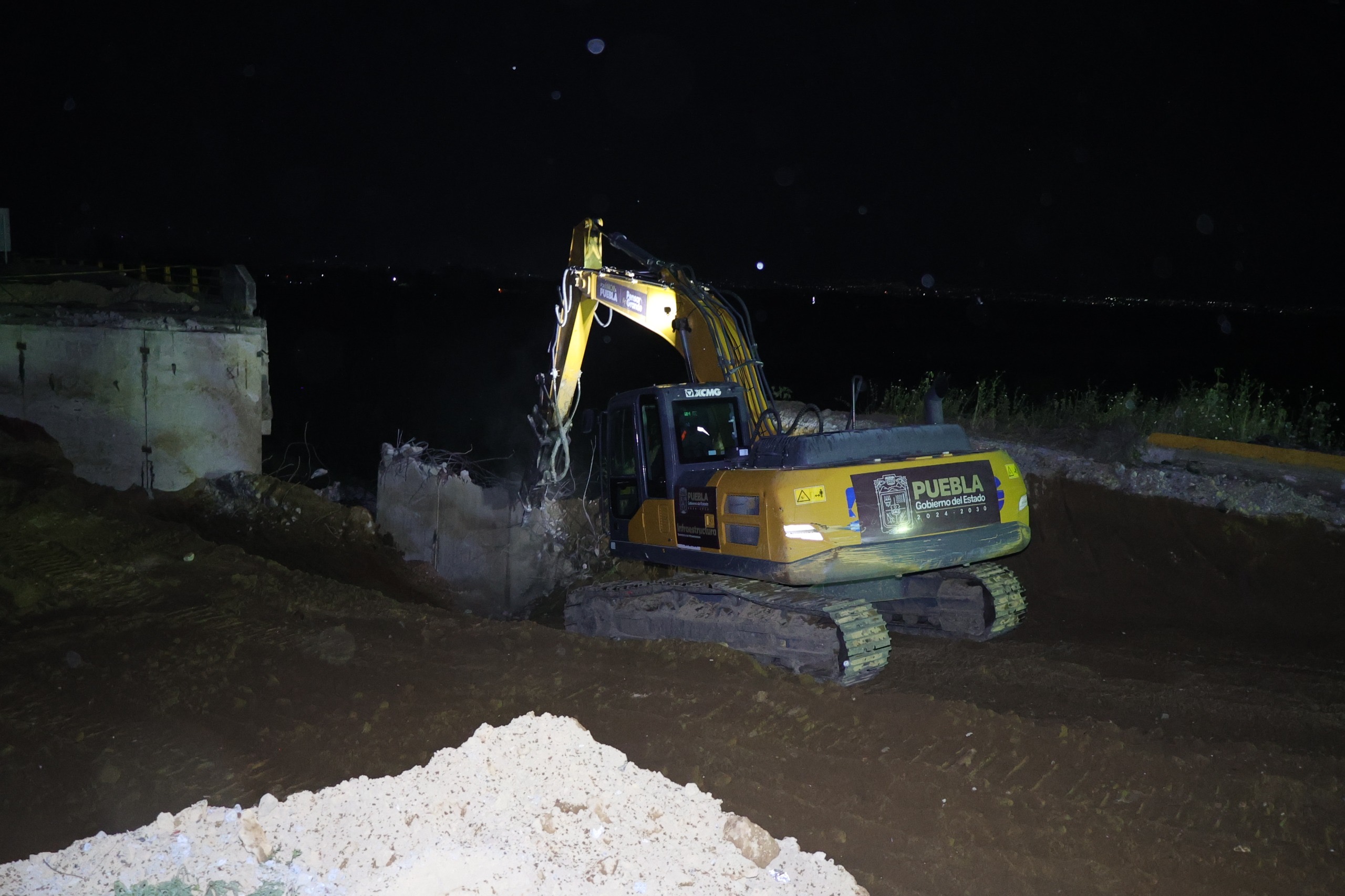 HUEJOTZINGO, Pue. – Con el objetivo de acelerar la reconstrucción de la carretera que comunica al Aeropuerto Internacional “Hermanos Serdán”, donde se originó un socavón por defectos en la construcción lateral, el Gobierno del Estado, a través de la Secretaría de Infraestructura, realiza trabajos diurnos y nocturnos con unidades de los Módulos de Maquinaria para concluir con la intervención a la brevedad.