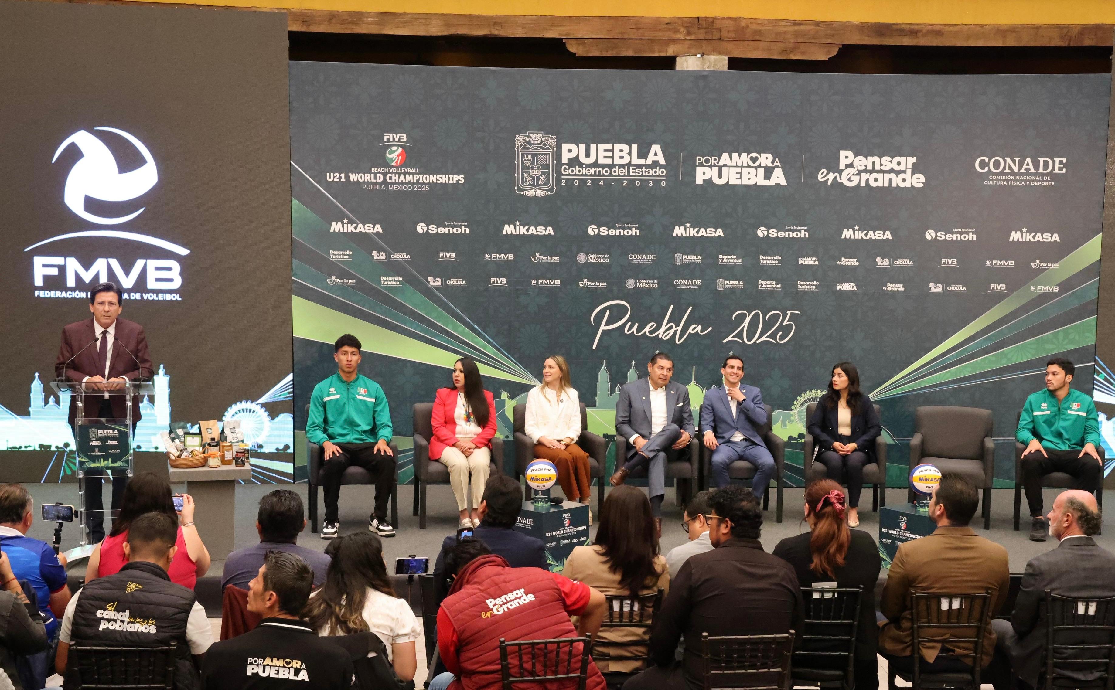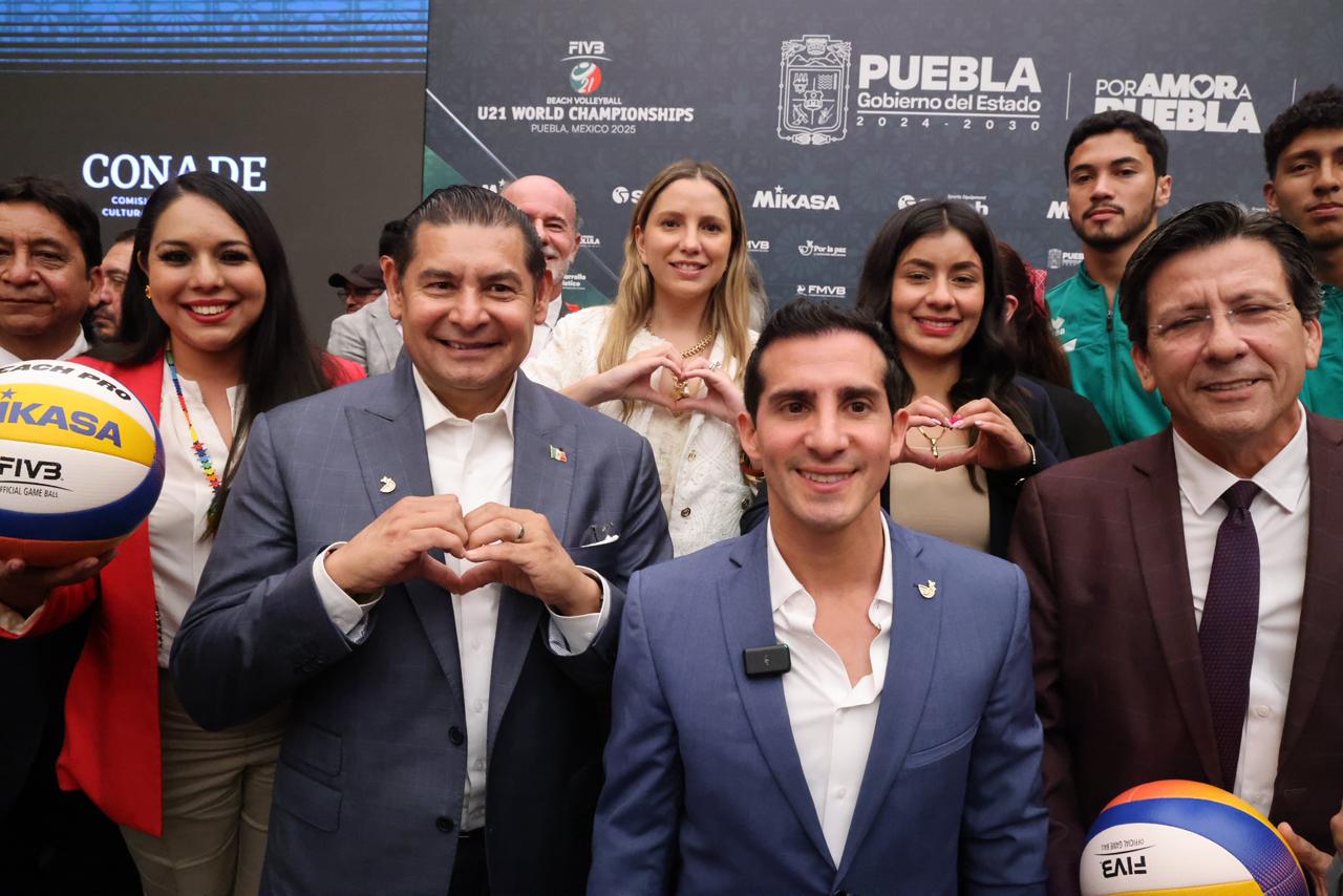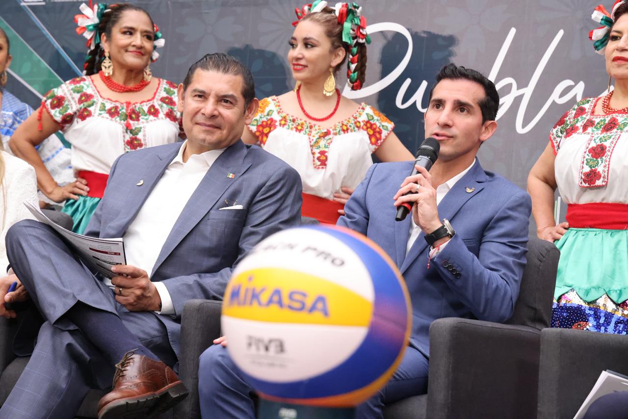 CIUDAD DE MÉXICO.- El director general de la Comisión Nacional de Cultura Física y Deporte (CONADE), Rommel Pacheco Marrufo, y el gobernador de Estado de Puebla, Alejandro Armenta, presentaron oficialmente este miércoles el Campeonato Mundial Sub-21 de Voleibol de Playa 2025, prestigioso evento a celebrarse del 15 al 19 de octubre en dicha entidad.