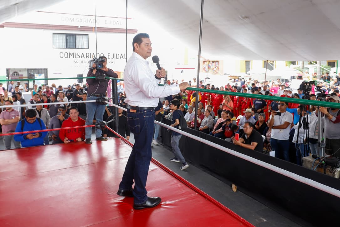 El gobernador Alejandro Armenta subrayó que en San Jerónimo se ejecutan 15 obras comunitarias que son administradas por comités ciudadanos, como parte del modelo de gobierno impulsado por la presidenta Claudia Sheinbaum. También anunció la entrega de alarmas vecinales conectadas al C5i para reforzar la seguridad en esta zona, sumándose a las mil alarmas ya instaladas en el estado. Señaló que esta estrategia ha contribuido a disminuir en un 51 por ciento los feminicidios gracias a la implementación de casas de resguardo y centros de atención.
