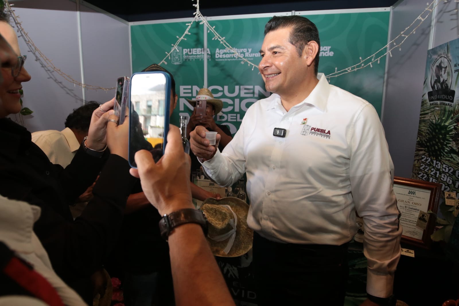 CIUDAD DE PUEBLA, Pue.- En el marco del décimo aniversario de la denominación de origen del mezcal poblano, el gobernador Alejandro Armenta recorrió el Encuentro Nacional del Mezcal, acompañado de la secretaria de Agricultura y Desarrollo Rural, Ana Laura Altamirano, y productores locales. El evento, organizado por el Gobierno del Estado, posiciona a Puebla como líder nacional en municipios con producción de mezcal, supera incluso a Oaxaca, cuna histórica de esta bebida.