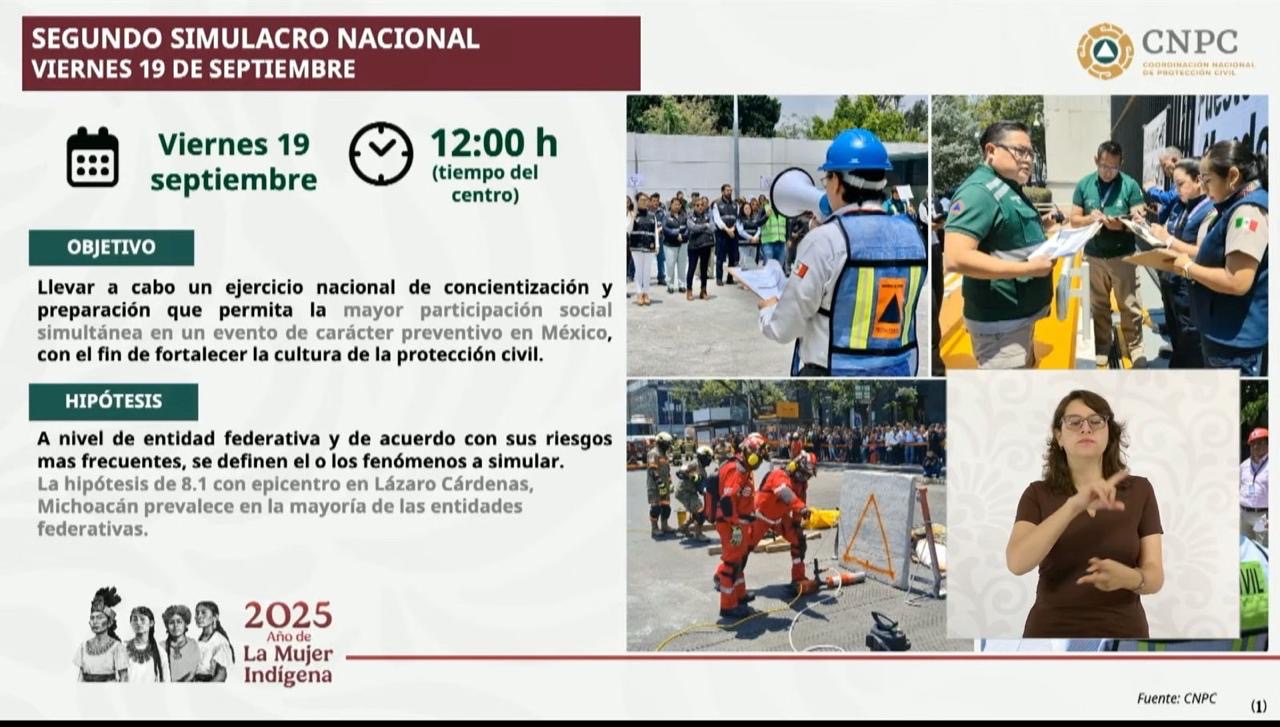 El simulacro nacional se realizará bajo la hipótesis de un sismo de magnitud 8.1 con epicentro en Lázaro Cárdenas, Michoacán. Este ejercicio tiene como finalidad promover una respuesta organizada ante fenómenos naturales, involucra a la ciudadanía, instituciones públicas y sector empresarial, que en Puebla ha confirmado su participación mediante Coparmex y el Consejo Coordinador Empresarial.