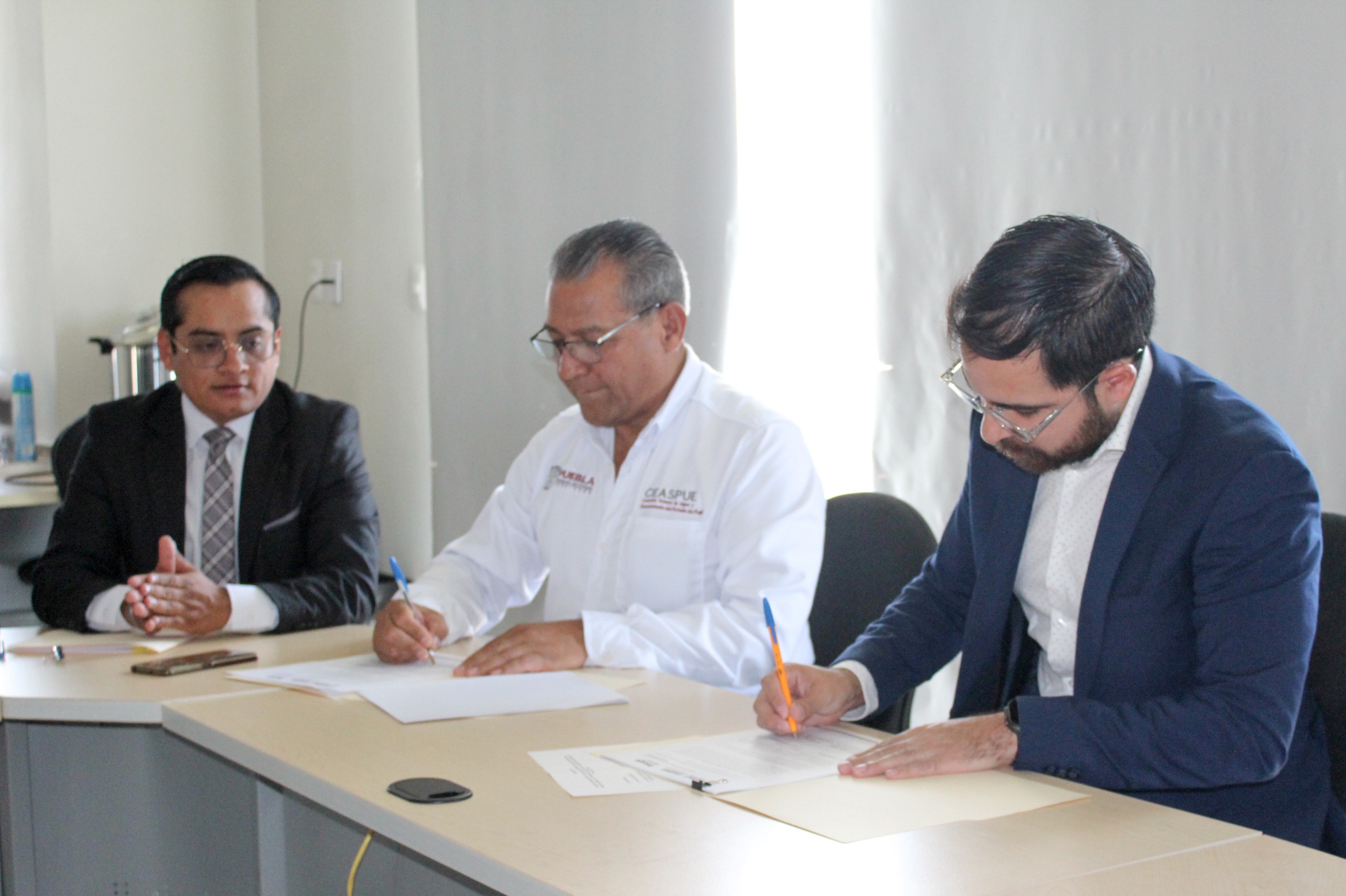 CIUDAD DE PUEBLA, Pue. – En seguimiento a la instrucción de la presidenta Claudia Sheinbaum y el gobernador Alejandro Armenta para impulsar tecnologías limpias y desarrollo sustentable, la Comisión Estatal de Agua y Saneamiento (CEASPUE) firmó un convenio de colaboración con la Agencia de Energía del Estado de Puebla, para desarrollar proyectos modelo que faciliten el uso de recursos renovables en bombeo en el agua y su proceso de tratamiento.
