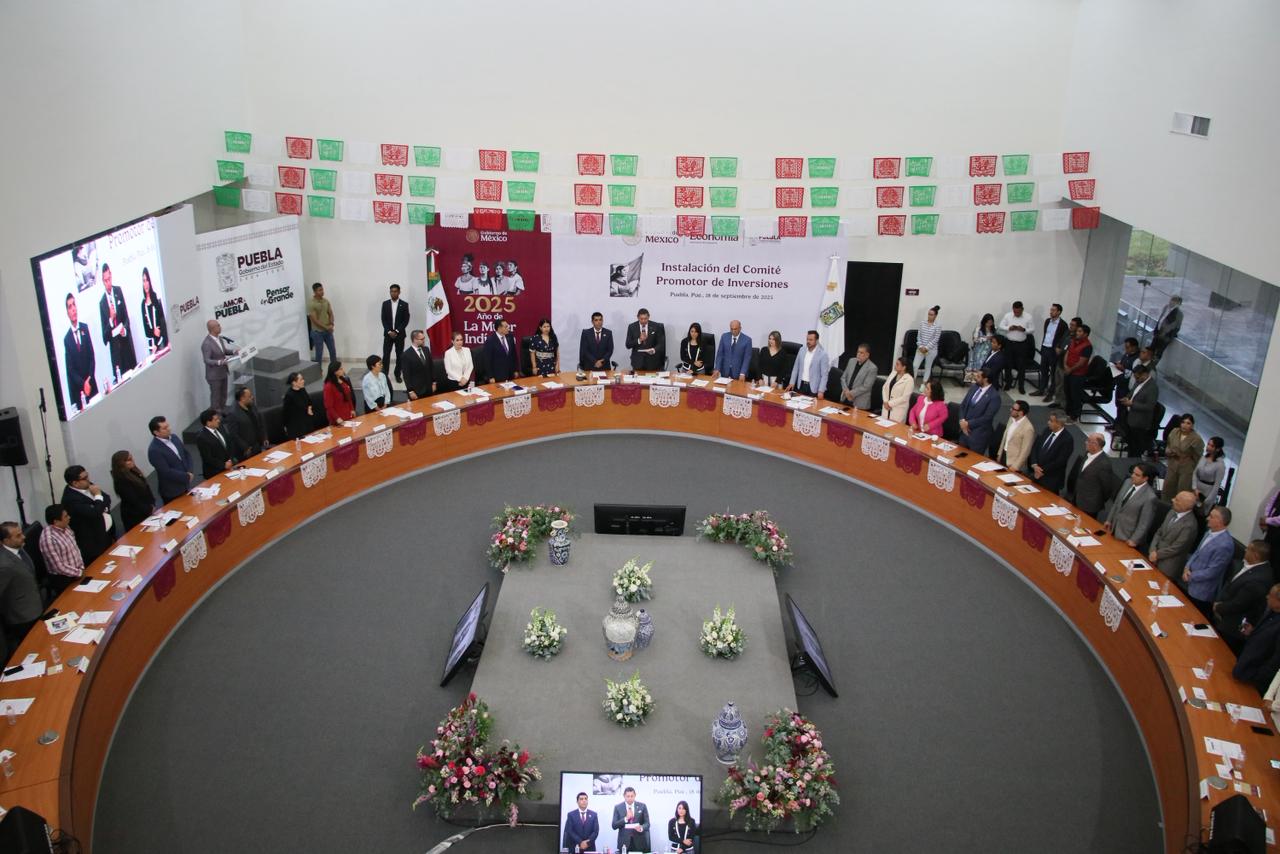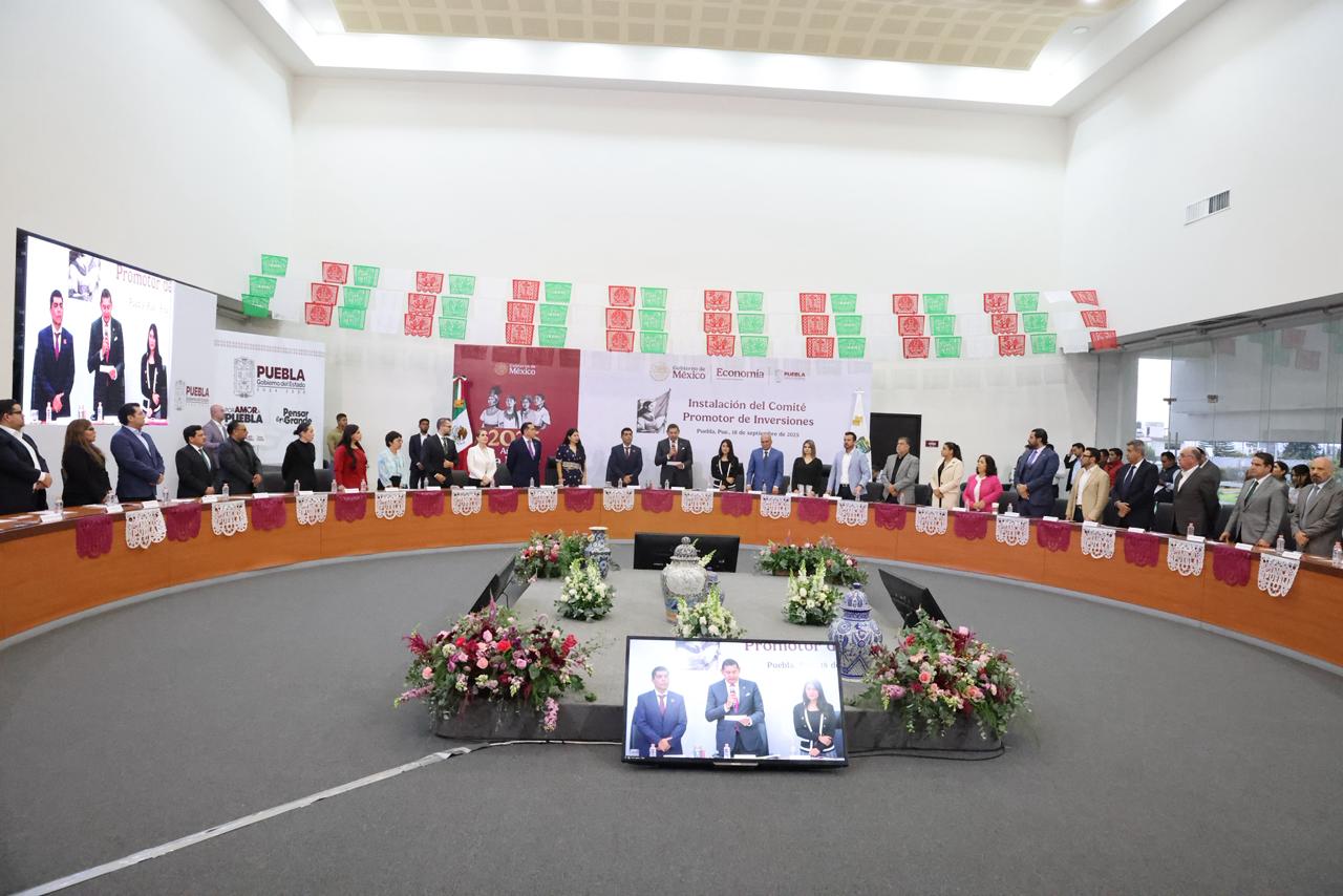 CIUDAD DE PUEBLA, Pue.- Durante la instalación del Comité Promotor de Inversiones, en coordinación con la Secretaría de Economía del Gobierno de México, el gobernador Alejandro Armenta refrendó el compromiso de su administración con el desarrollo económico incluyente.