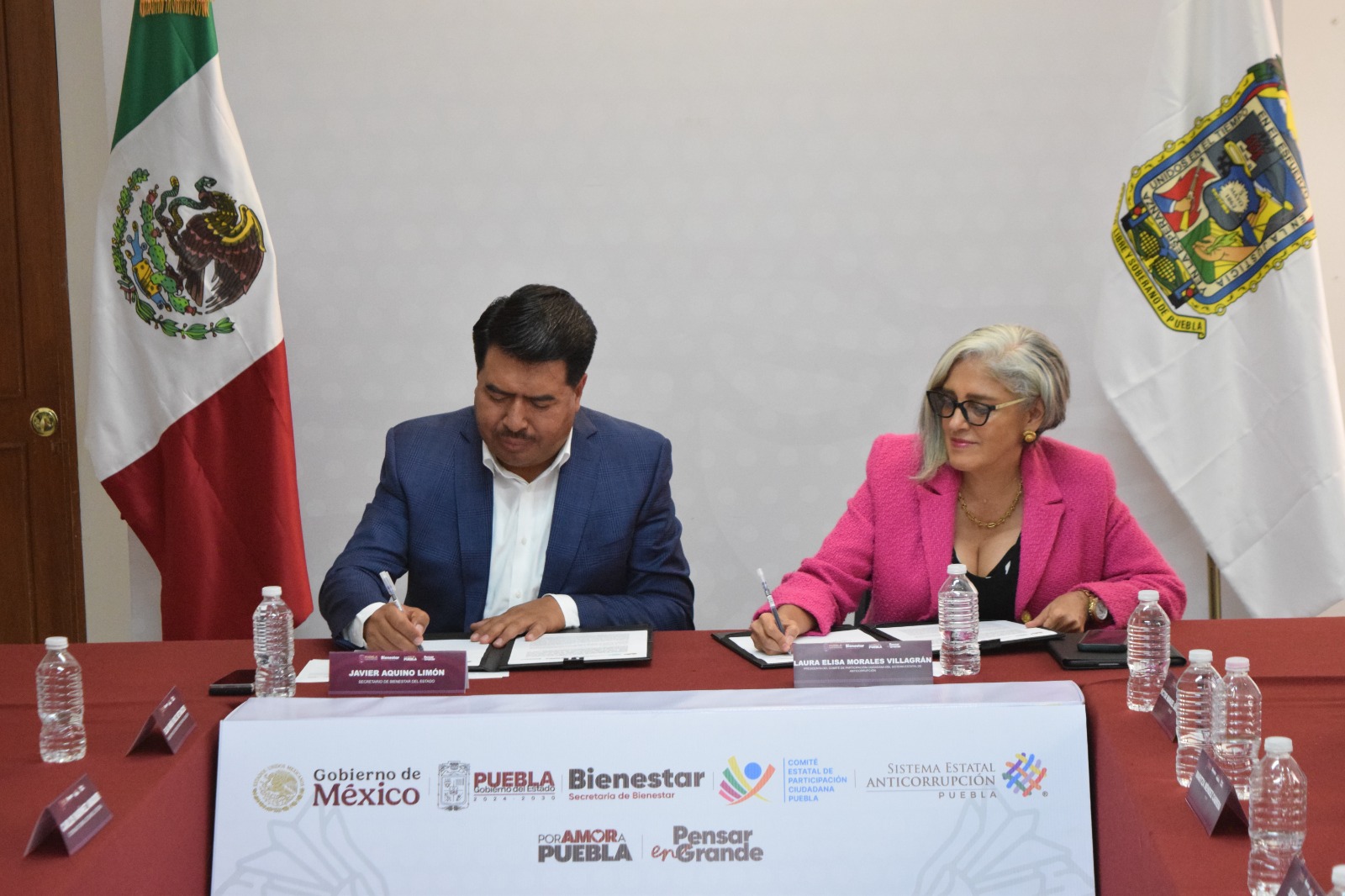 CIUDAD DE PUEBLA, Pue. – Con el firme propósito de fortalecer la participación ciudadana en los procesos de desarrollo social y garantizar el acceso equitativo a los programas sociales, el secretario de Bienestar, Javier Aquino Limón, firmó un convenio de colaboración con la presidenta del Comité Estatal de Participación Ciudadana de Puebla, Laura Elisa Morales Villagrán.