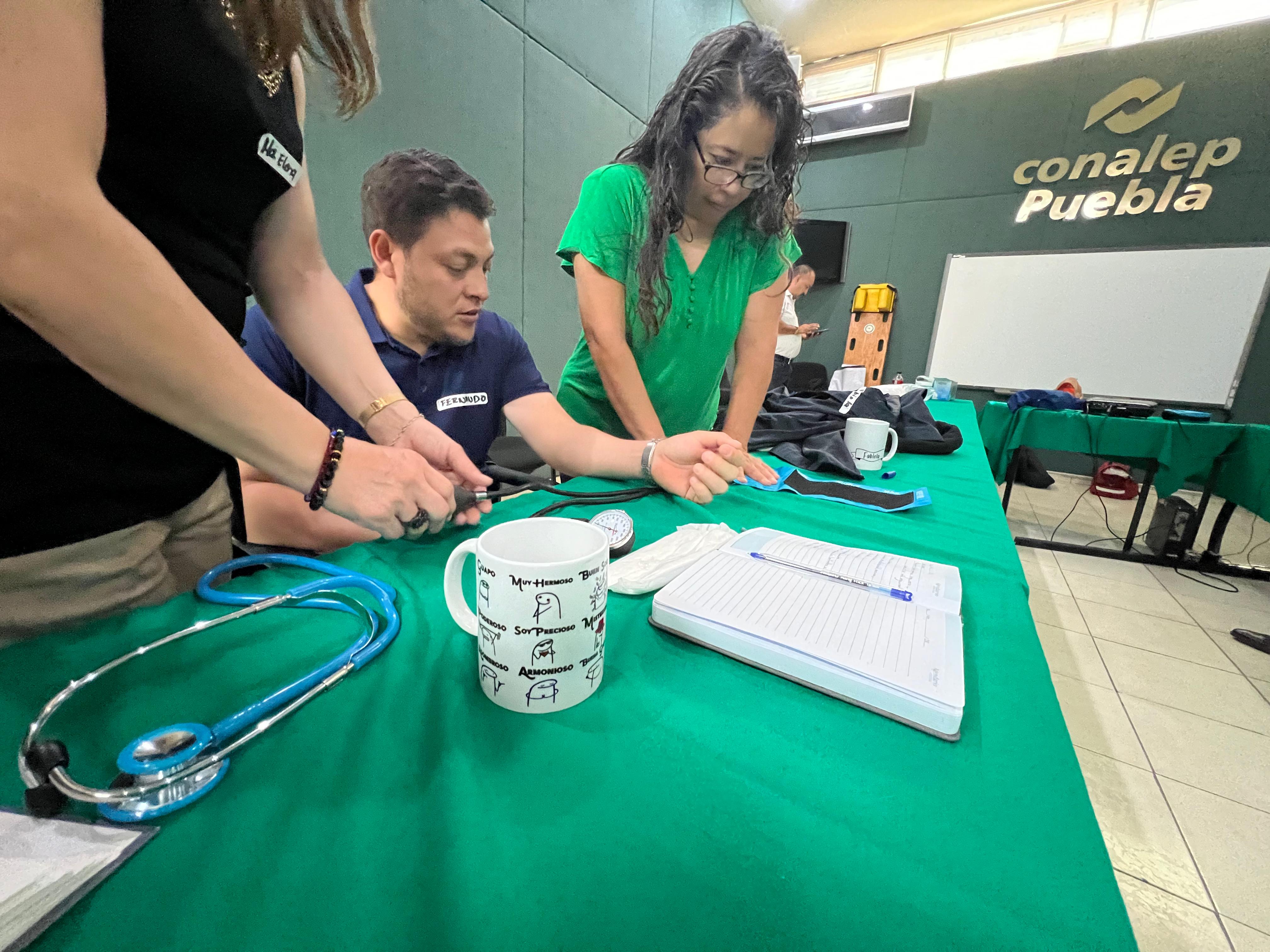 CIUDAD DE PUEBLA, Pue.- A fin de otorgar los conocimientos que permitan brindar atención inmediata para salvar vidas y asistir en la recuperación de una persona en situación de emergencia, el Colegio de Educación Profesional Técnica del Estado de Puebla (Conalep), impartió el curso “Primeros Auxilios” a personal de la Dirección General que integra las brigadas de Protección Civil.