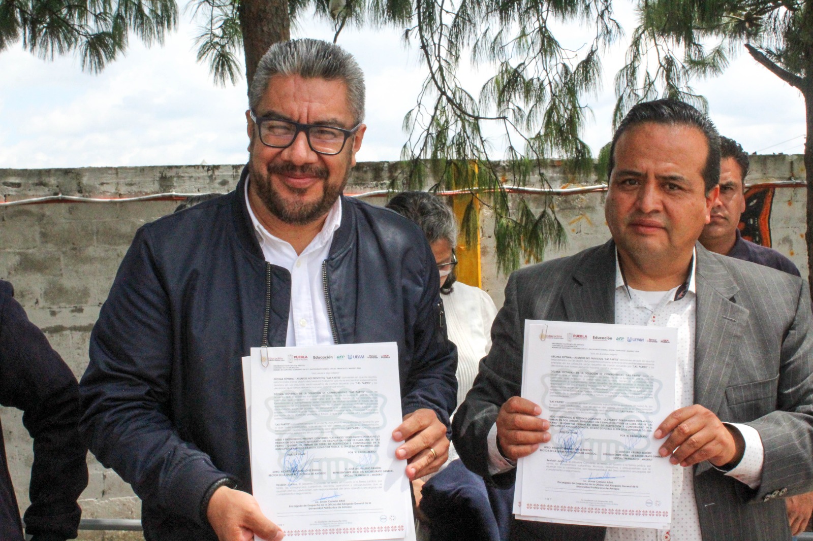 AMOZOC, Pue.- El rector de la Universidad Politécnica de Amozoc (UPAM), Ricardo López Priego, realizó la firma de convenio de la beca “Francisco I. Madero” con el director del bachillerato con el mismo nombre. Con esto se busca que las y los alumnos de dicho bachillerato puedan ingresar al programa universitario con el 50 por ciento de descuento en inscripción y así continúen con sus estudios. Estos trabajos se realizan bajo la línea del gobernador del estado Alejandro Armenta, quien busca que la educación sea accesible para todas y todos.