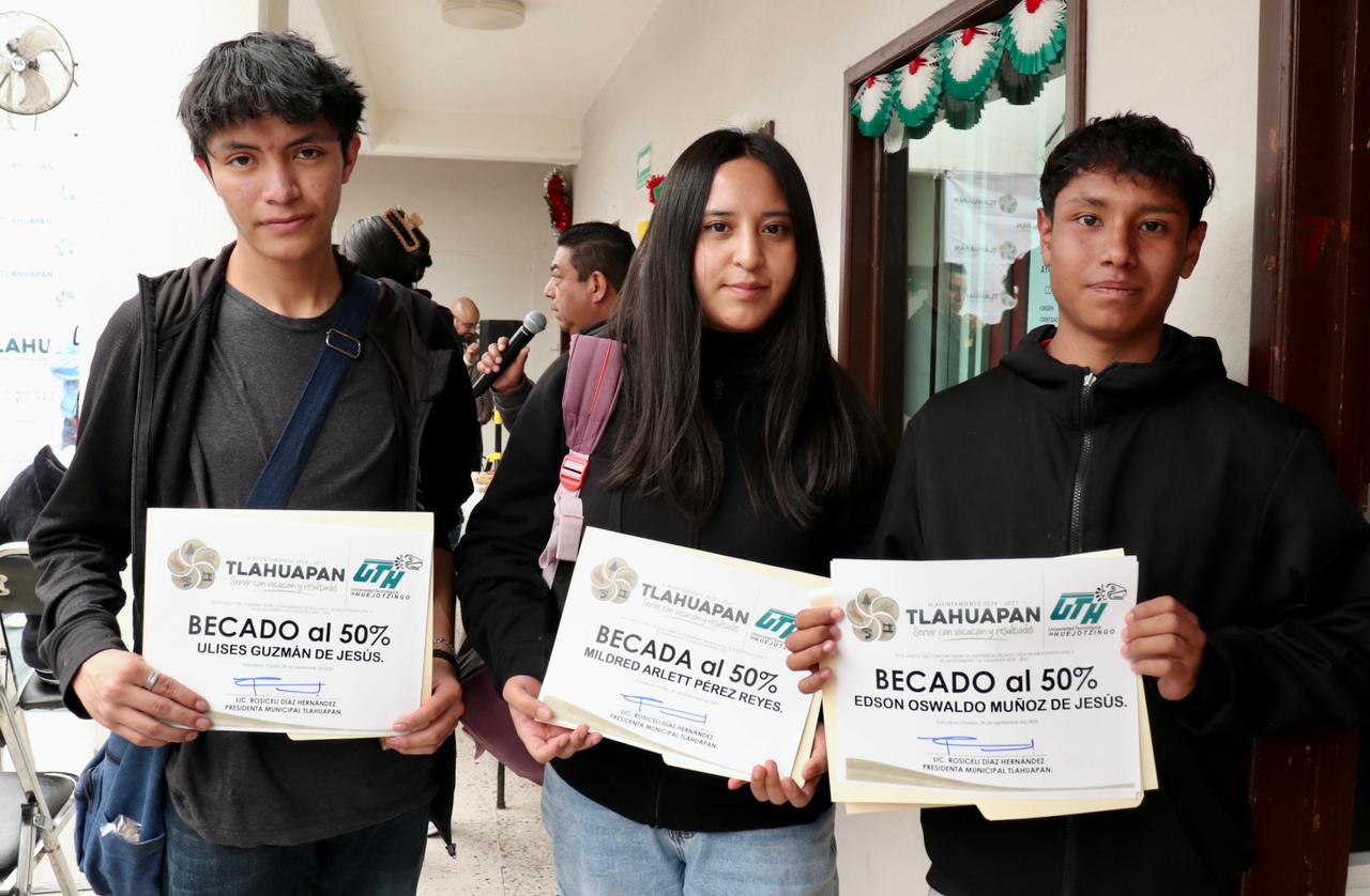 SANTA RITA TLAHUAPAN, Pue.- Derivado de la firma de convenio entre la Universidad Tecnológica de Huejotzingo (UTH) y el Ayuntamiento de Santa Rita Tlahuapan, 45 estudiantes originarios de dicha demarcación recibieron una beca de estudios, con el propósito de fortalecer su formación académica.