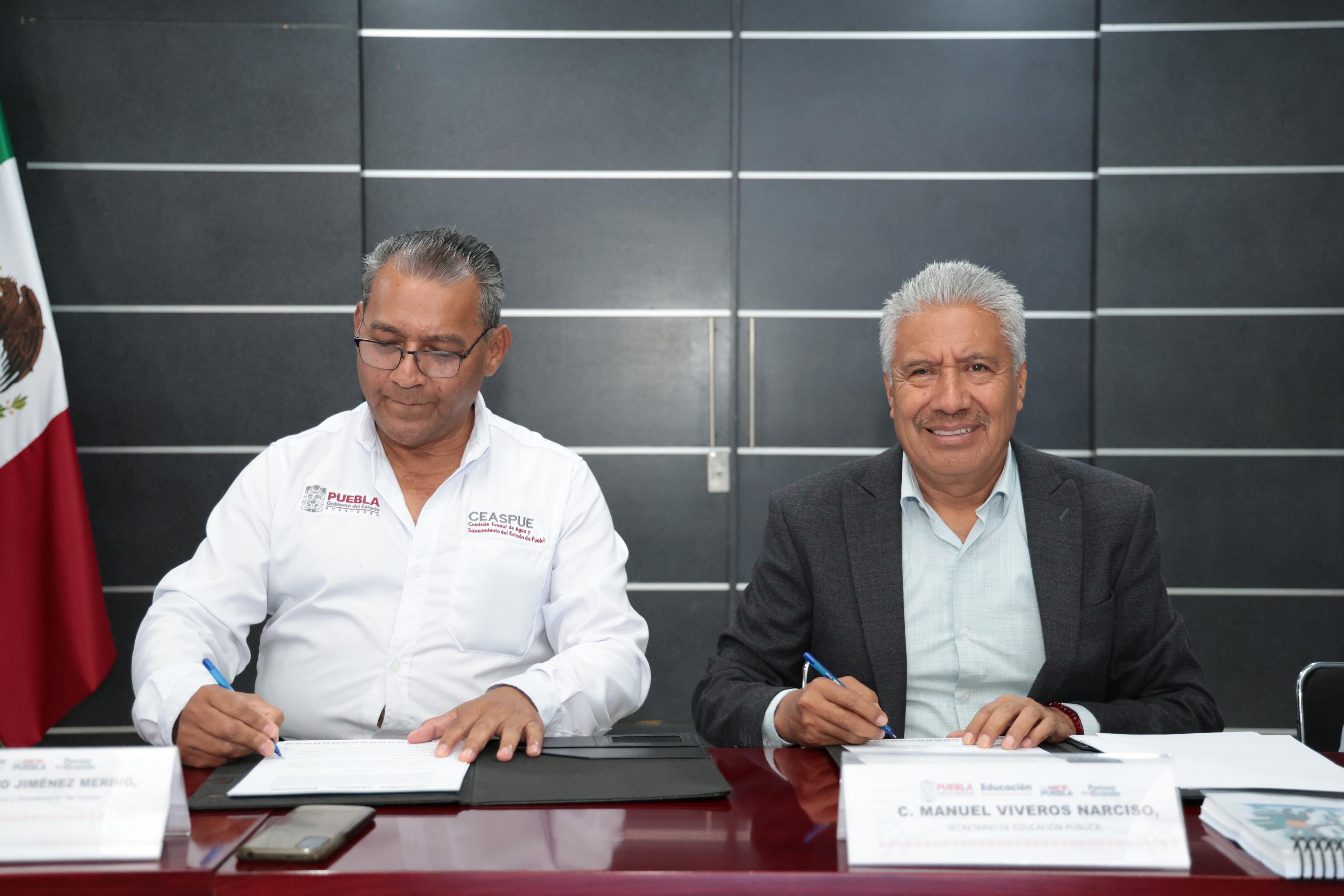 CIUDAD DE PUEBLA, Pue.- Con el objetivo de fomentar una cultura para fortalecer el cuidado del agua, la Secretaría de Educación Pública (SEP) y la Comisión Estatal de Agua y Saneamiento del Estado de Puebla (CEASPUE), firmaron un convenio de colaboración para difundir un compendio que integra 110 mensajes para crear la nueva cultura del agua. El titular de la SEP, Manuel Viveros Narciso invitó al sector educativo a unirse a esta iniciativa.
