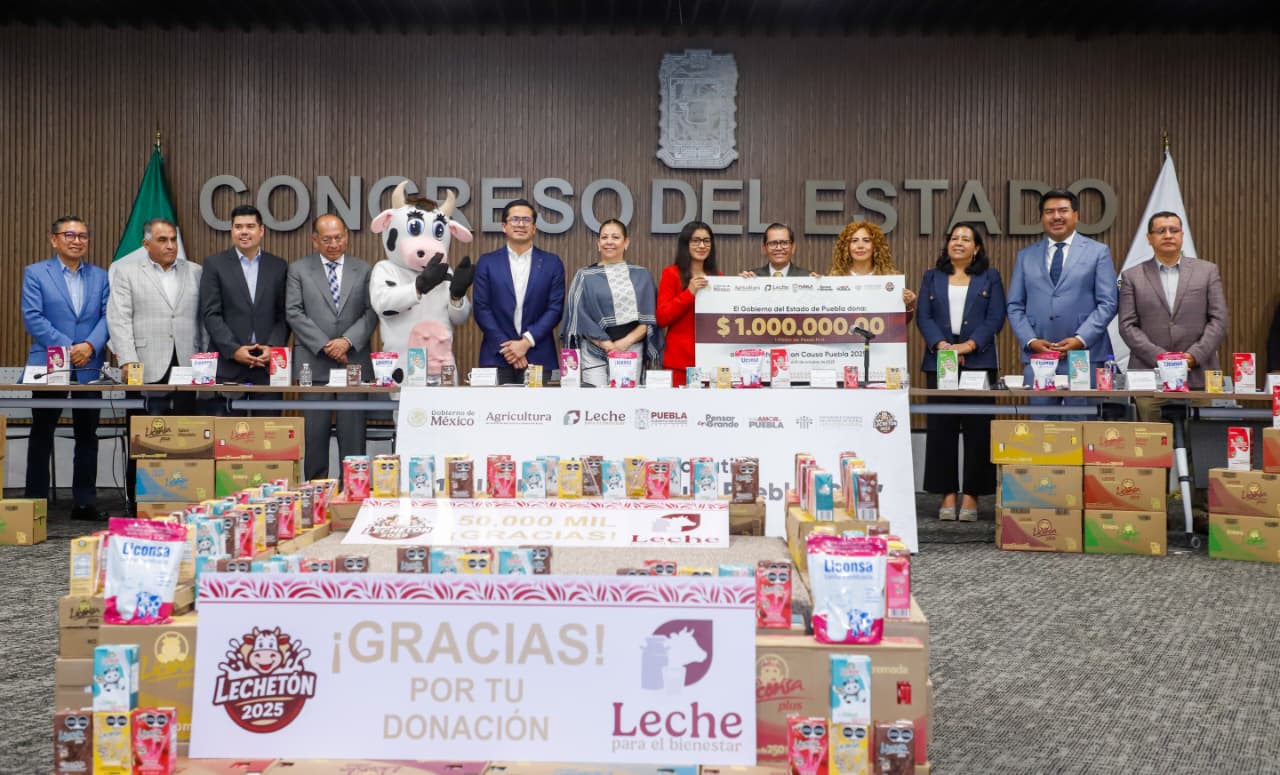 CIUDAD DE PUEBLA, Puebla.- Con la entrega simbólica de un donativo de un millón de pesos por parte del Gobierno del Estado, Puebla marcó el inicio del primer Lechetón con Causa 2025, una iniciativa que busca recolectar 50 mil litros de leche para beneficiar a familias en situación de vulnerabilidad. Este acto solidario, realizado en el Congreso del Estado, representa un paso decisivo en el compromiso de erradicar el hambre y garantizar una alimentación digna, en concordancia con los objetivos de la Agenda 2030.