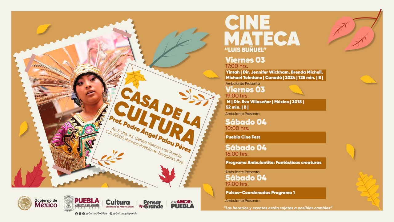 Con estos eventos de entrada libre, el Gobierno del Estado y la Secretaría de Arte y Cultura reafirman su compromiso por ofrecer propuestas accesibles y de calidad que celebran la riqueza cultural de Puebla; y a su vez, brindar plataformas incluyentes para colectivos, artistas emergentes y público en general. La programación busca que las y los asistentes disfruten de un fin de semana lleno de cine, música y danza que fortalecen la identidad poblana.