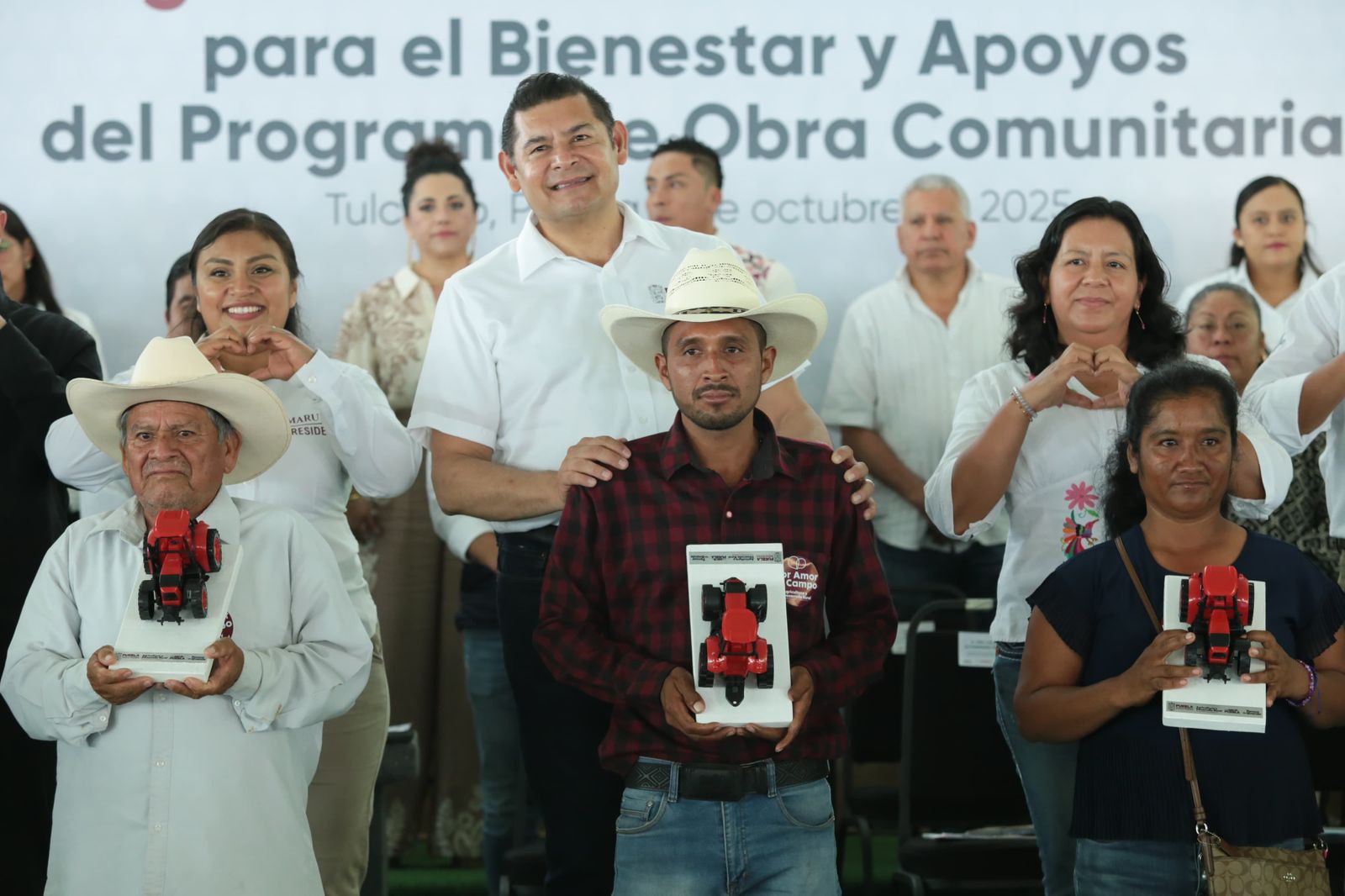 Como parte del Programa para el Desarrollo del Sector Pecuario y Acuícola, se entregaron 144 equipos que incluyen material genético novillonas, sementales, sales minerales para mejorar el rendimiento alimenticio, y acciones de fortalecimiento para la ganadería, la apicultura y la acuacultura. En materia de modernización y equipamiento del campo, se otorgaron 148 paquetes de herramientas, infraestructura y tecnología, destinados a optimizar las labores agrícolas y elevar la eficiencia productiva. En total, Tulcingo y su región reciben más de mil 800 apoyos por un monto superior a los 17.2 millones de pesos.
