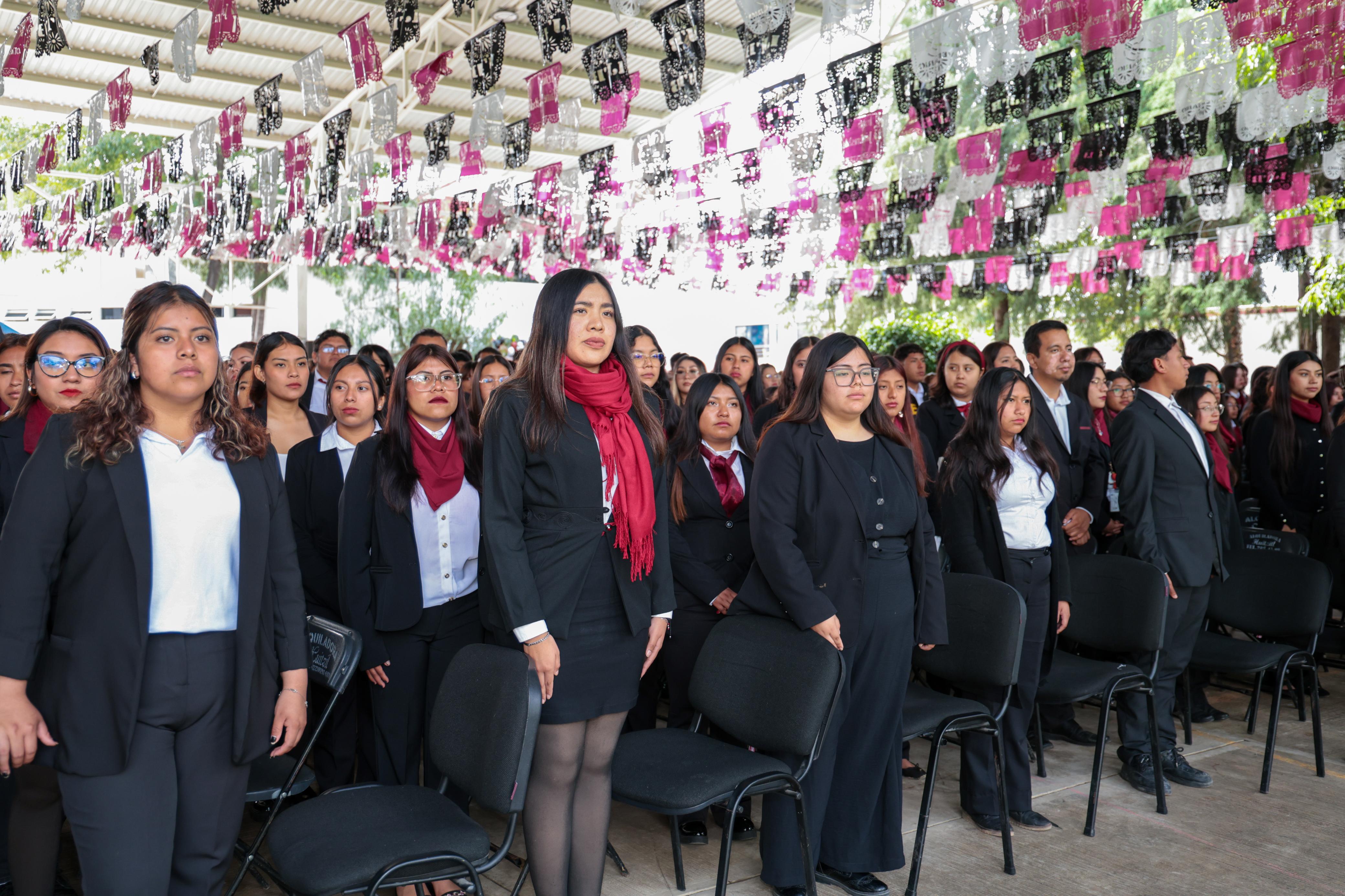 Acompañado de la directora de la institución, María del Cielo Mendoza Hernández, de las 582 alumnas y alumnos de las licenciaturas de preescolar, telesecundaria y secundaria, así como, los 56 docentes y 12 trabajadores administrativos, el titular de la dependencia agregó que, otro de los beneficios impulsados por la presidenta Claudia Sheinbaum, es que los alumnos que egresen de educación media superior podrán contar con dos certificados, uno que avalará estudios de preparación técnica y otro de conclusión del nivel educativo.