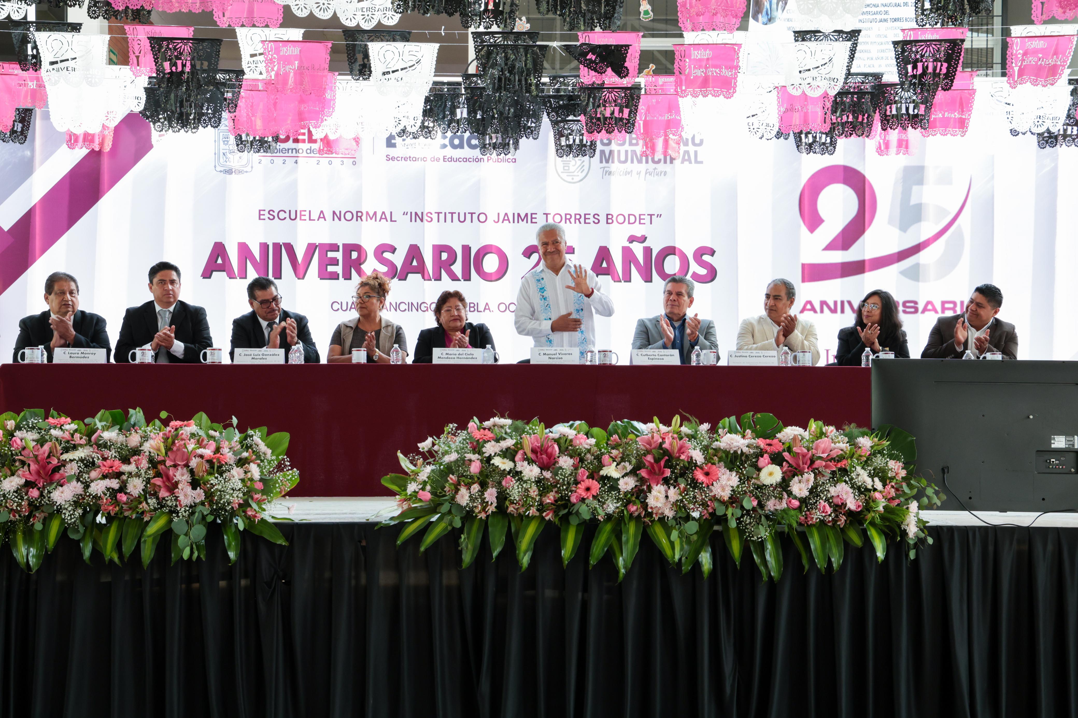 -El secretario de Educación Pública del Estado, Manuel Viveros Narciso encabezó la ceremonia del 25 aniversario de la Escuela Normal Rural “Instituto Jaime Torres Bodet”.