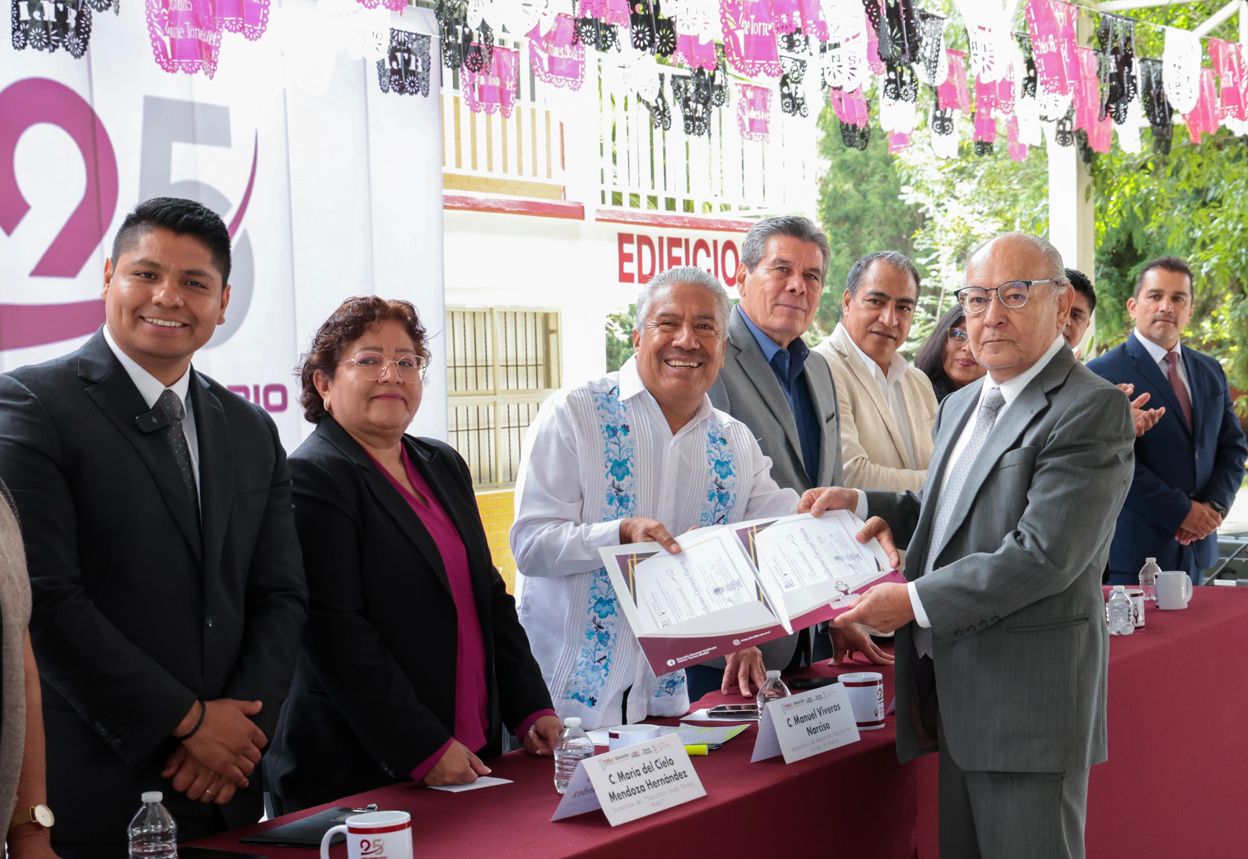 CIUDAD DE PUEBLA, Pue.- “Gracias a la simplificación administrativa, el compromiso y visión humanista del gobernador del estado, Alejandro Armenta, hoy las y los estudiantes de nivel medio superior y superior tienen más oportunidades para que estudien cerca de sus localidades”, aseguró el secretario de Educación Pública, Manuel Viveros Narciso, al presidir la conmemoración del 25 aniversario de la Escuela Normal Rural “Instituto Jaime Torres Bodet”.
