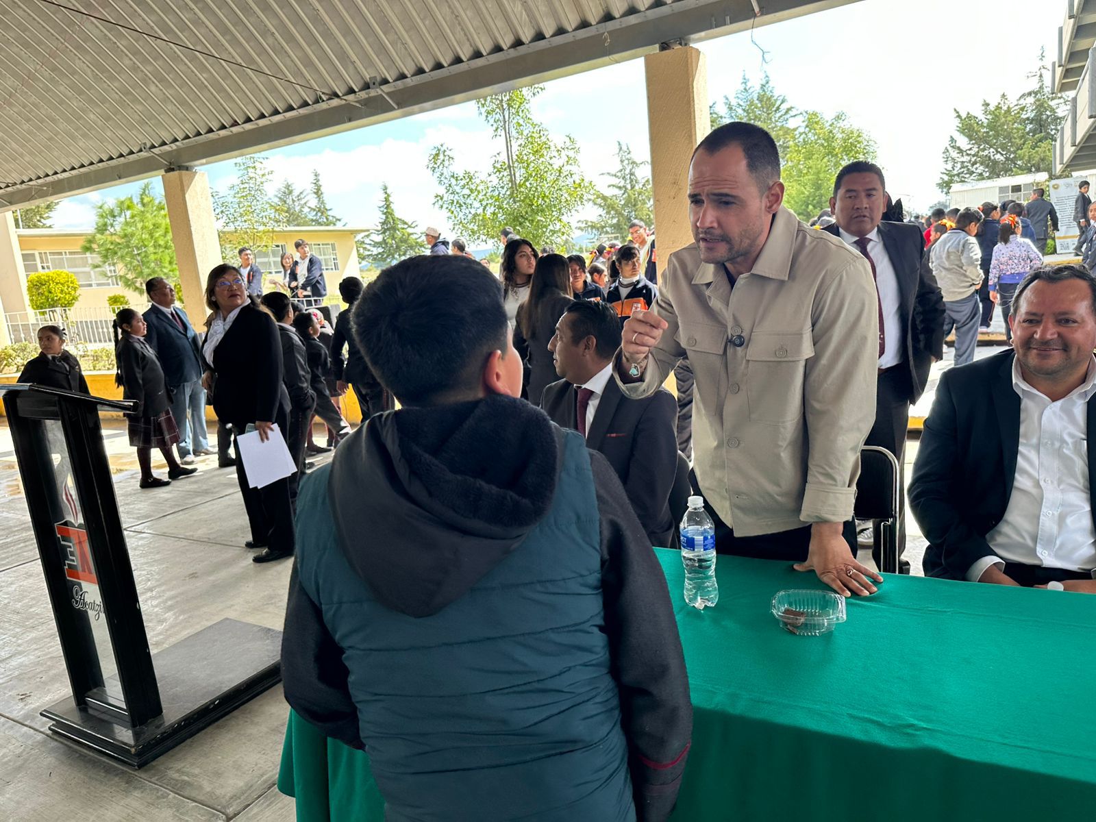 “A nombre del rector El Chelis, venimos con todo el entusiasmo, porque es la cuarta ocasión en los últimos dos meses que visitamos Acatzingo; sin duda, son un ejemplo de compromiso, no sólo de sus estudiantes, sino también de madres y padres de familia”, expresó.