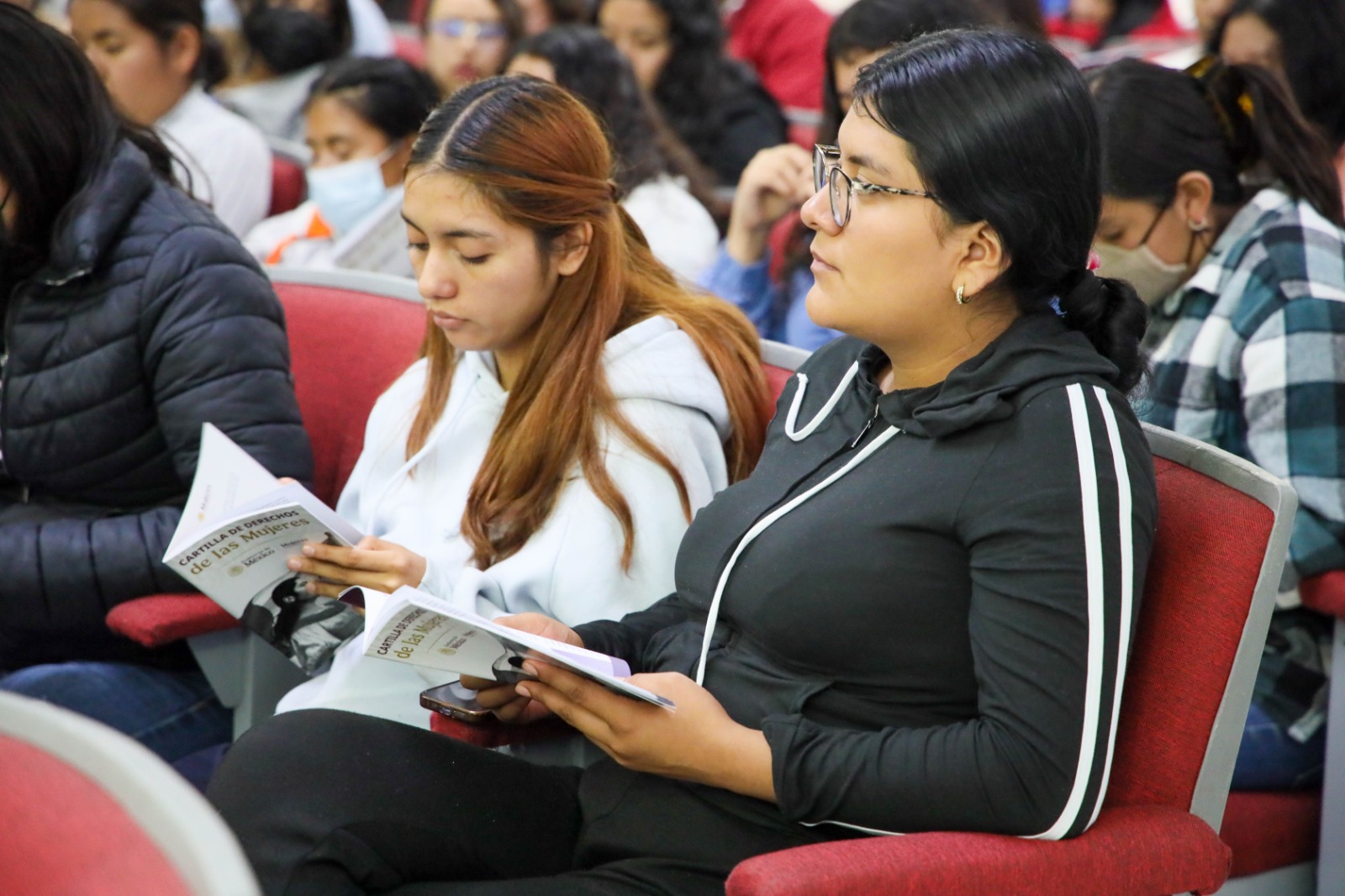 En el encuentro, la jefa del departamento de Formación con Enfoque de Género y Derechos Humanos de la Secretaría de las Mujeres, Rocío Espíndola García, participó como ponente y entregó la Cartilla de Derechos de las Mujeres, al destacar la importancia de la educación y su participación en la sociedad.