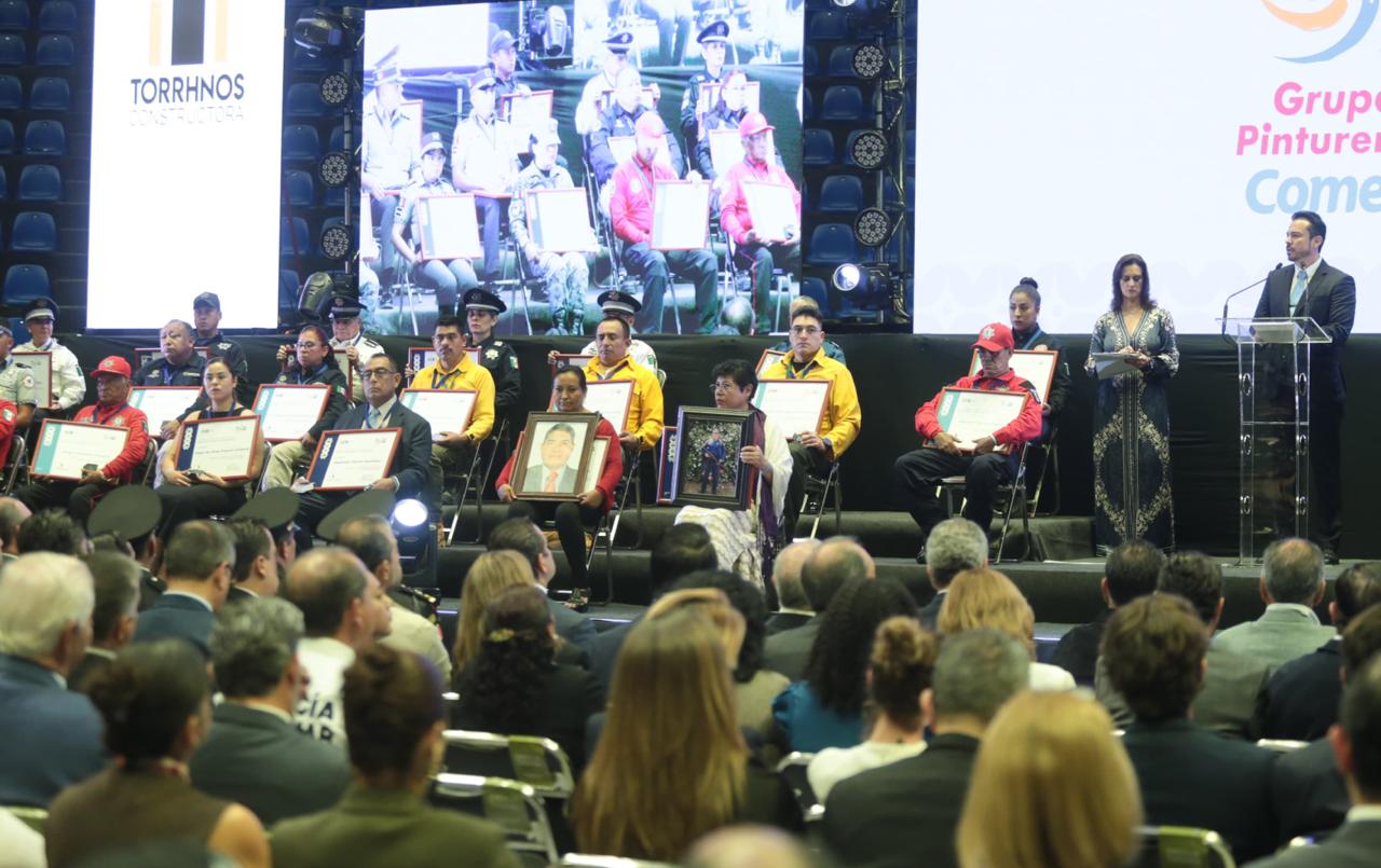 El evento reunió a más de 55 servidoras y servidores públicos de distintas corporaciones como la Guardia Nacional, cuerpos de policía, bomberos, brigadas forestales, protección civil y poder judicial, quienes fueron ovacionados por sus familias, autoridades y ciudadanía. Además, se rindió homenaje póstumo a elementos caídos en cumplimiento de su deber, se subrayó el respeto y la memoria colectiva hacia su legado.
