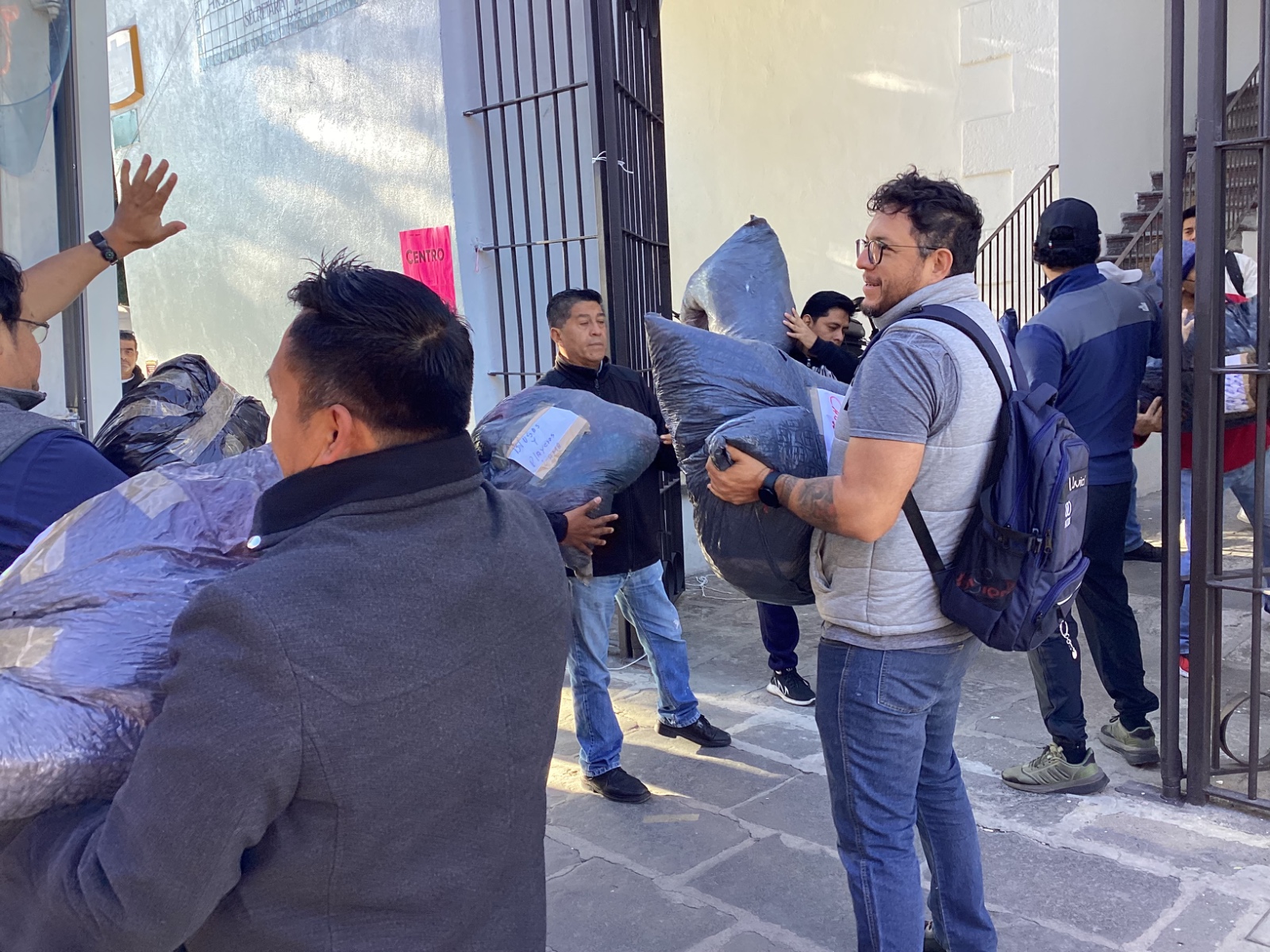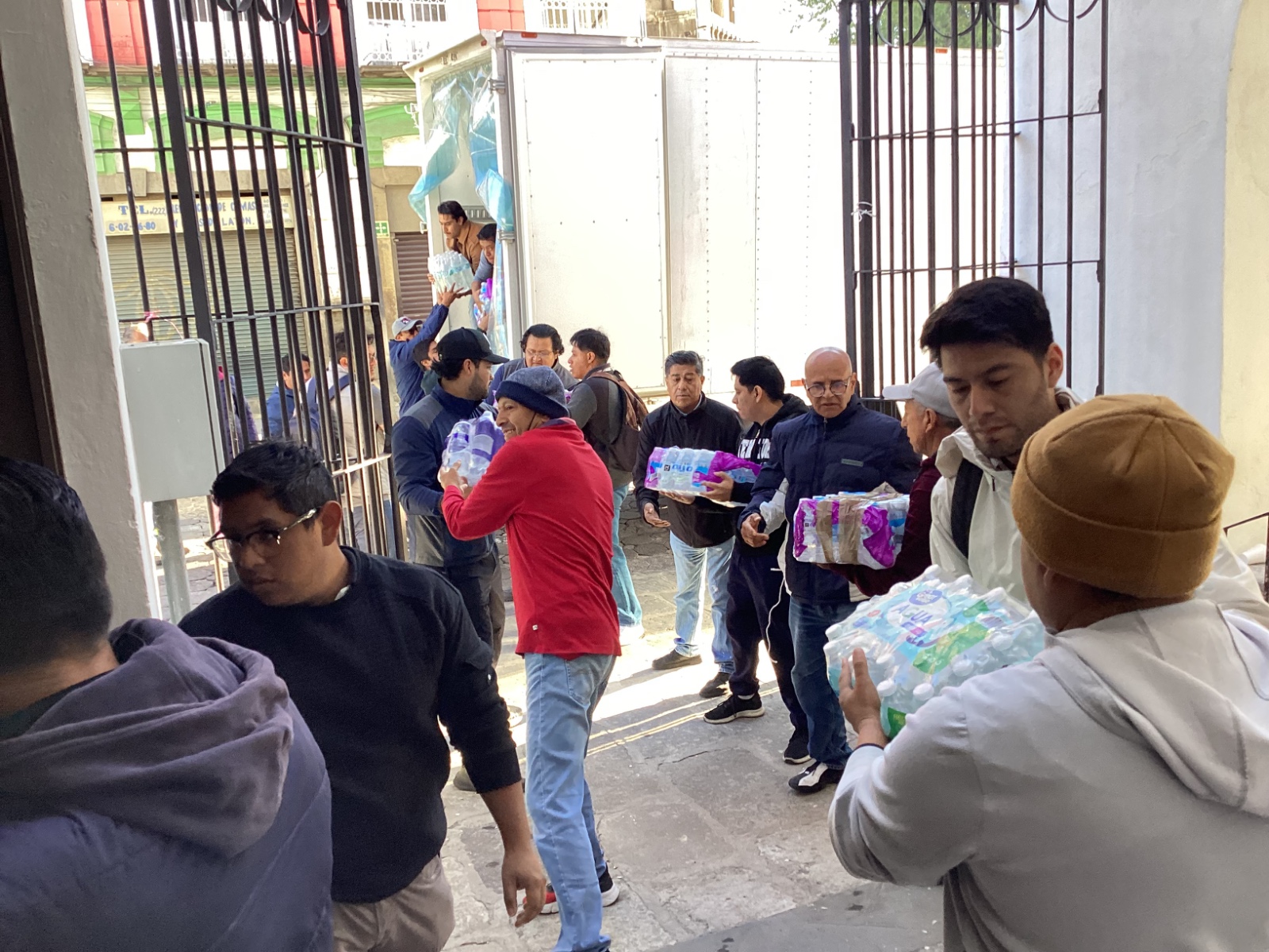 Además, trabajadores, trabajadoras, servidoras y servidores públicos continúan con la organización de los productos donados por la ciudadanía y grupos civiles en apoyo a las y los hermanos en contingencia.