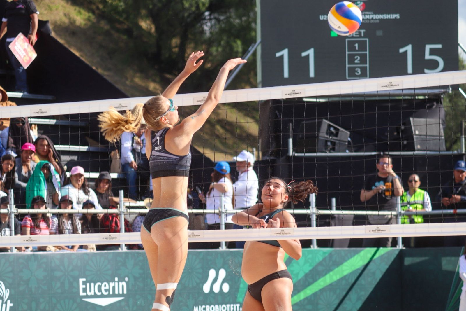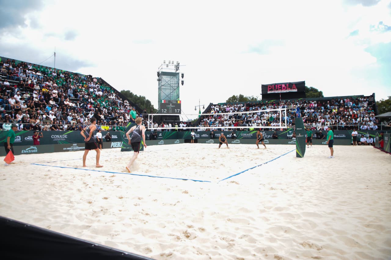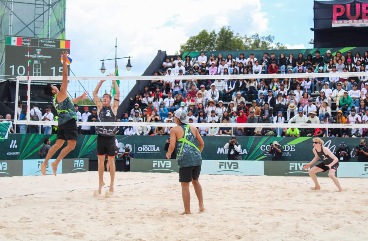 SAN PEDRO CHOLULA, Pue.- Con gran ambiente y una jornada llena de energía, este miércoles arrancaron de manera oficial los partidos del Campeonato Mundial de Voleibol de Playa Sub-21, que tiene como sede la explanada del Parque Soria, justo frente a la Gran Pirámide de Cholula.