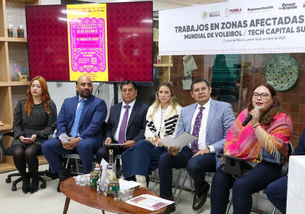 CIUDAD DE MÉXICO.- “Puebla se catapulta como referente de cultura, deporte y turismo a nivel nacional e internacional”, mencionó el gobernador del estado, Alejandro Armenta, en la Casa de Representación, donde la titular de la Secretaría de Arte y Cultura presentó la sexta edición del Encuentro Estatal “Entre Vivos y Muertos”, que se desarrollará a finales de octubre y principios de noviembre en diversos municipios.