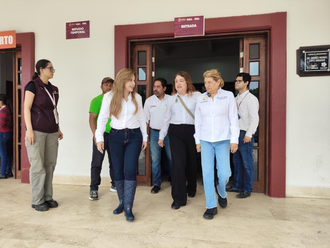 HUAUCHINANGO, Puebla. – Con total solidaridad y un mensaje de esperanza y apoyo, la presidenta del Patronato del Sistema Estatal DIF, Ceci Arellano, visitó el albergue temporal instalado en el municipio, uno de los más afectados por las intensas lluvias registradas en la Sierra Norte. En el lugar, la presidenta llegó con cuatro camiones llenos de colchonetas, ropa, agua y alimentos no perecederos para las personas damnificadas, con estos camiones ya suman 11 que llegan con víveres para la población.